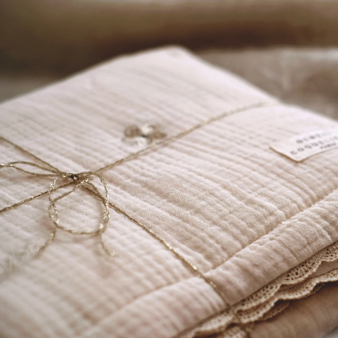 Matelassé, ce plaid bébé est rembourré de 100% coton.