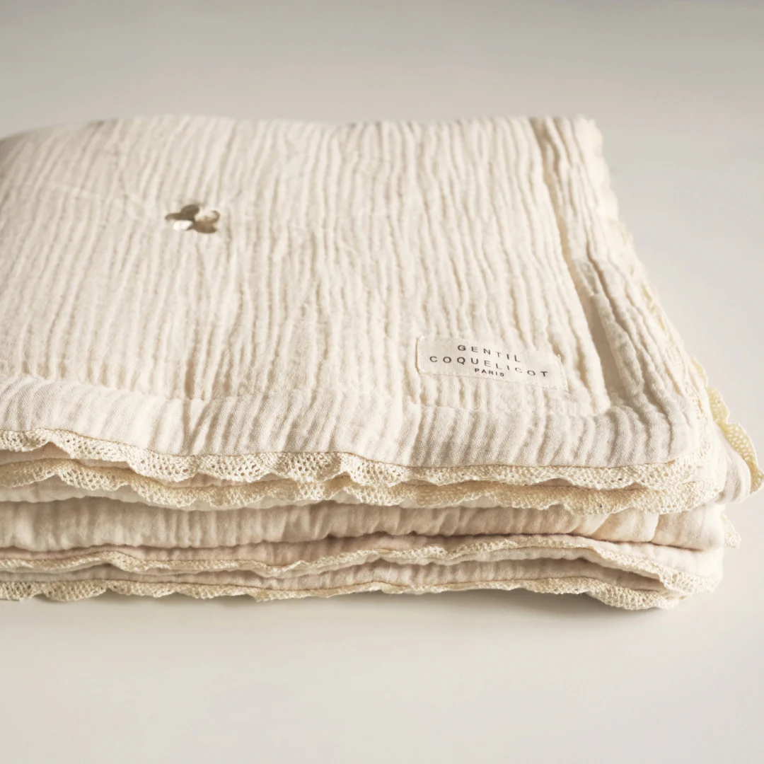 Magnifique couverture brodée fleurs de la marque Gentil coquelicot. Matelassé, ce plaid bébé est rembourré de 100% coton. Élégante et raffinée, de matière toute douce et moelleuse, elle sera idéale en cadeau de naissance. Laissez-vous séduire par sa finition en dentelle de coton croquée et ses broderies fleurs. Véritable coup de coeur pour le béguin […]
