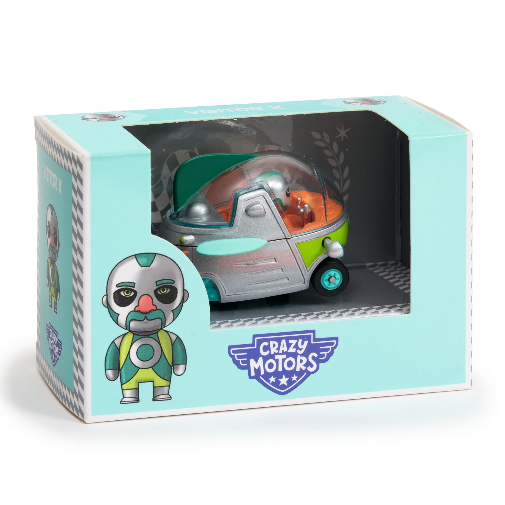 Avec sa carrosserie ultra stylée, ses couleurs qui en mettent plein les yeux et son look bien à elle, cette Crazy Motors / Visitor X fait partie de la collection complètement déjantée Crazy Motors de Djeco, et ici, on est carrément fans.