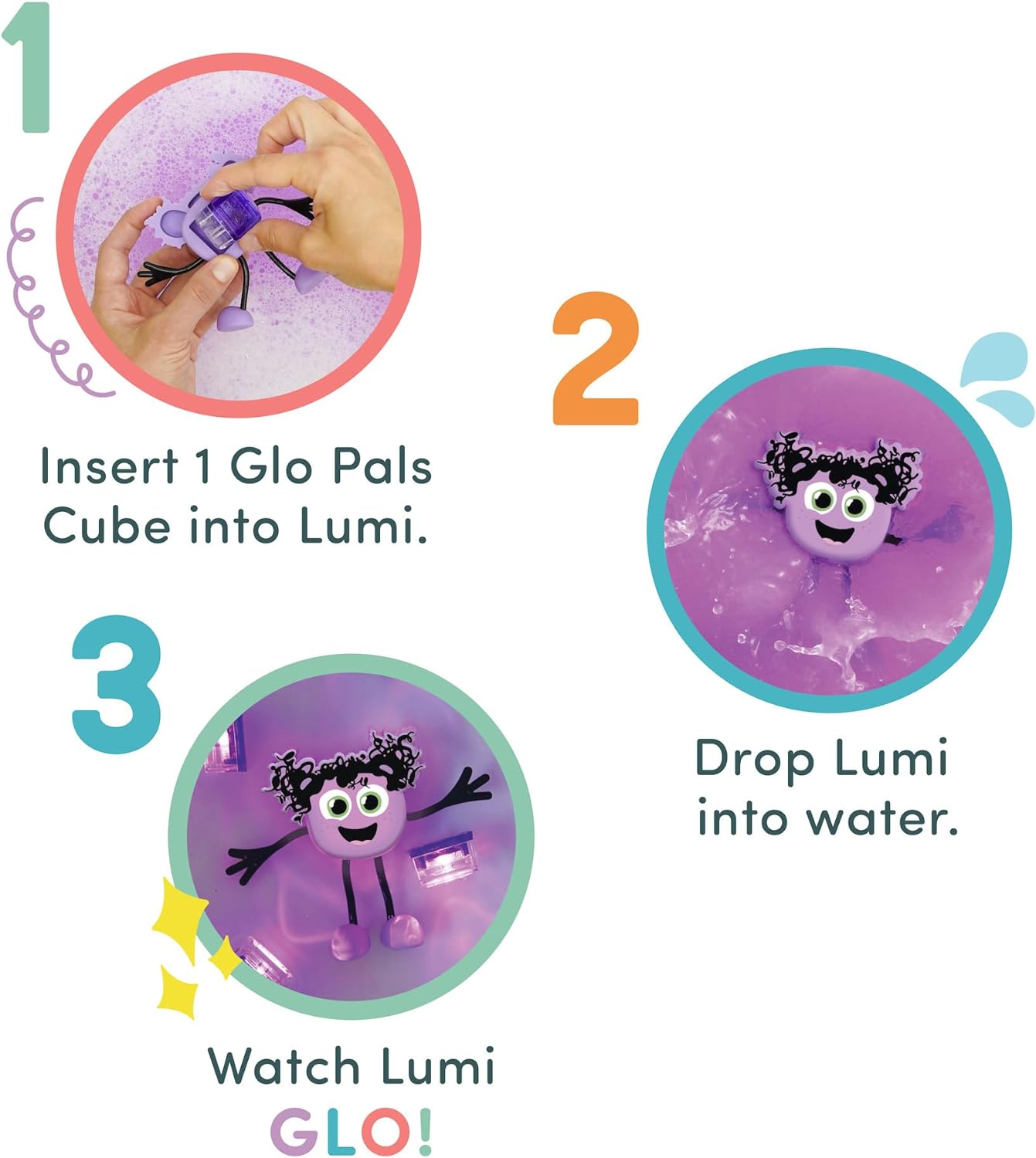Les Glo Pals sont des personnages lumineux et ludiques conçus pour rendre le temps du bain des enfants plus amusant et interactif. Chaque cube Glo Pal s’illumine automatiquement lorsqu’il entre en contact avec de l’eau, ajoutant une touche de magie à chaque bain.