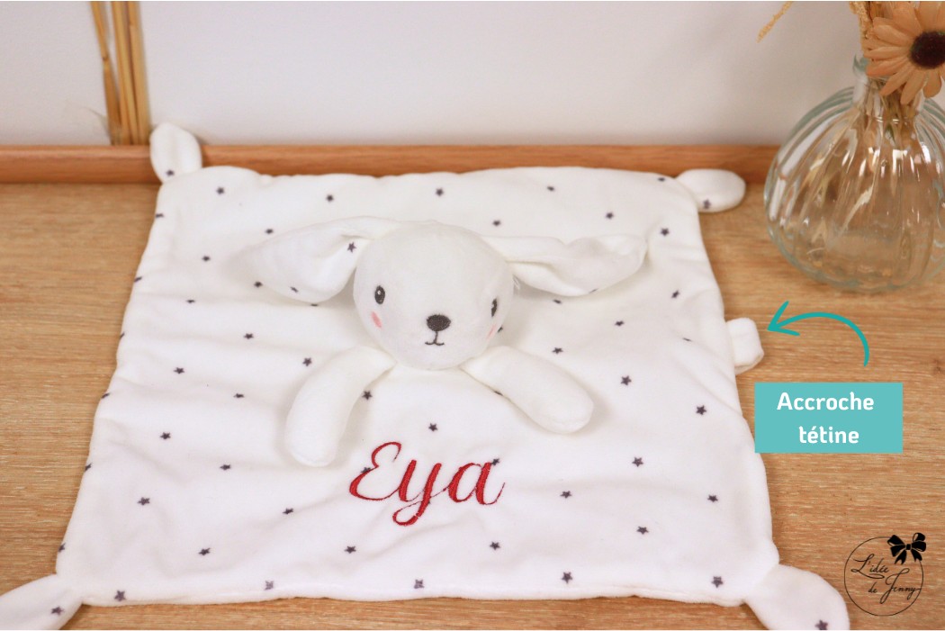 Ce doudou lapin brodé est une belle idée de cadeau à offrir :