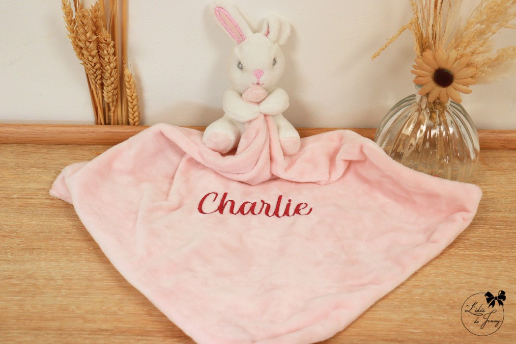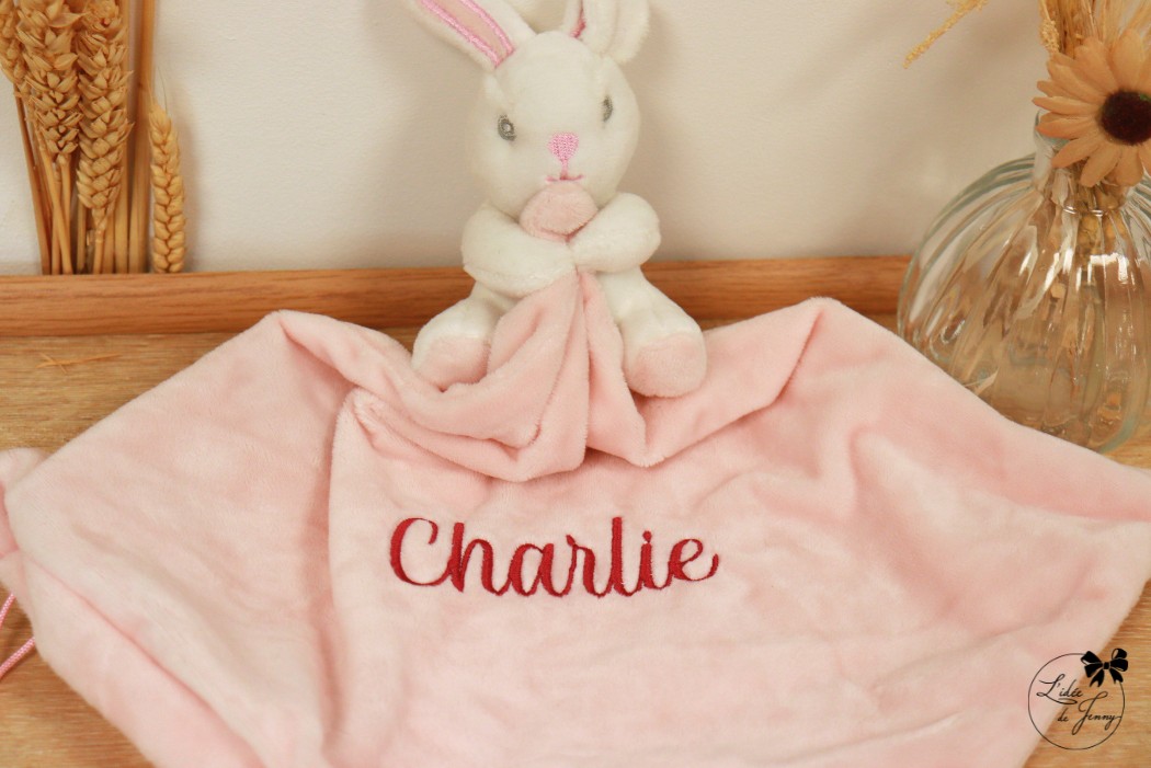 Doudou Lapin personnalisé brodé – Rose