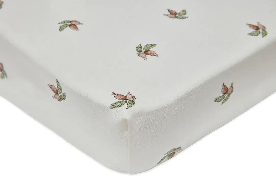 Qu’il est mignon ce drap-housse avec l’imprimé Rosehip intégral ! Non seulement le drap-housse fait belle figure dans le lit, mais il protège également le matelas du berceau. Pour une protection optimale, utilisez ce drap-housse en jersey par-dessus le drap-housse molletonné plus épais. Grâce à ses élastiques, le drap-housse reste bien en place sur le matelas. Saviez-vous qu’un drap-housse pour berceau peut également être utilisé sur le petit matelas du landau ? Ce drap-housse se marie parfaitement avec les autres articles de la collection Rosehip. On peut aussi le combiner avec un article tricoté de la collection Pure Knit ou Shell Knit. Les possibilités sont infinies !