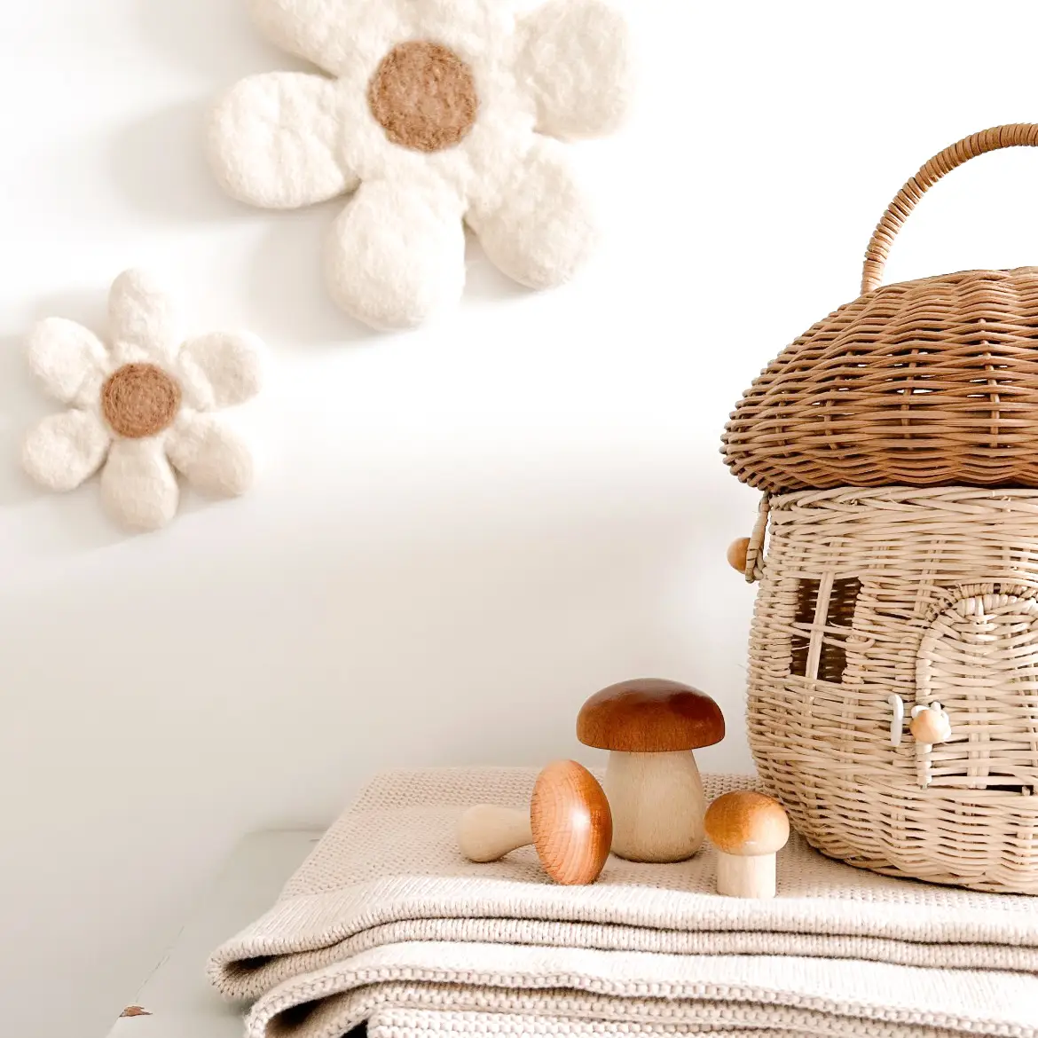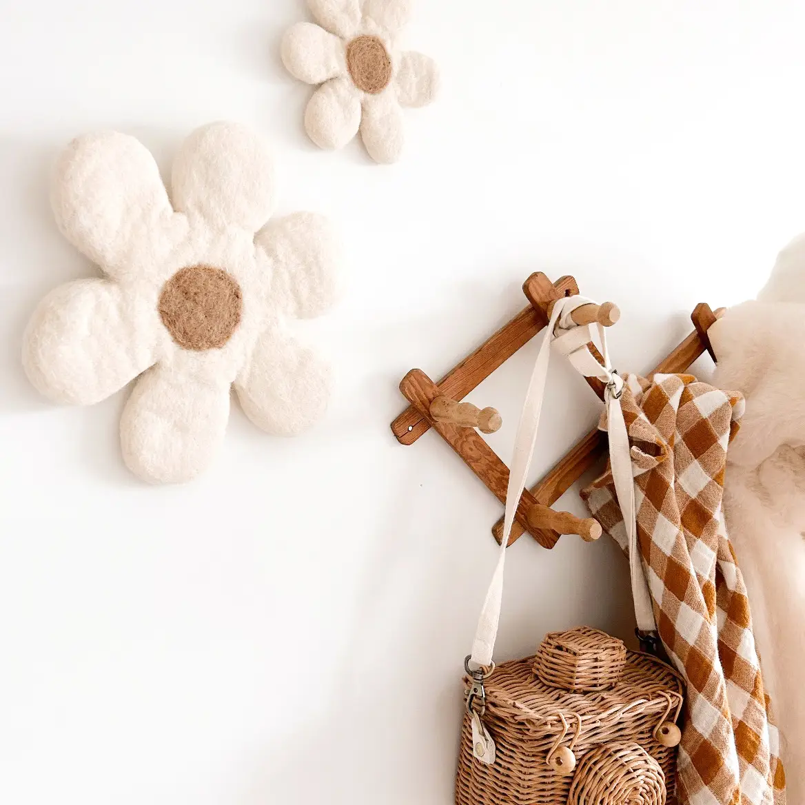 Créez une atmosphère douce et apaisante dans la chambre de votre enfant grâce à ces fleurs murales en laine feutrée !