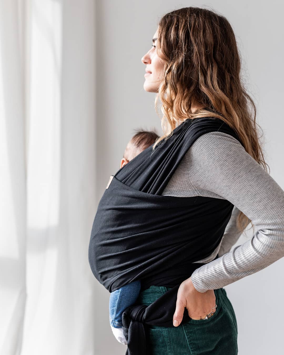Echarpe de portage Bio Noir Baby On Earth sont idéales pour vous sentir proche de votre bébé, et aussi douces que du peau à peau. Elles sont confectionnées en bambou et coton biologique, certifié GOTS, avec des motifs exclusifs.