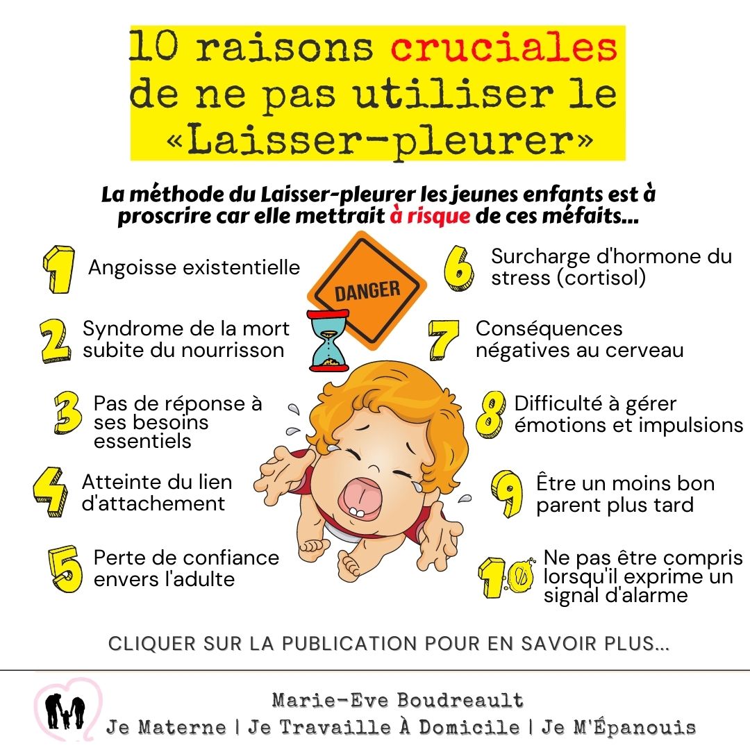 Les pleurs de bébé, cela te dit: « Danger, danger, danger? » « Rappelle-toi, que c’est une personne qui pleure. Donne à l’enfant in utero, au nourrisson, et à l’enfant le statut d’une personne. Ils ressentent et pleurent juste comme une personne plus âgée. Réponds à ton bébé. » -Dr William Sears Comment savoir si tu es dans un cercle vicieux de détachement avec ton mini? En fait, cela débute souvent avec les pleurs. C’est tellement commun de laisser pleurer un bébé dans les sociétés modernes et c’est triste à mourir. Il y a que laisser pleurer un bébé affecte…