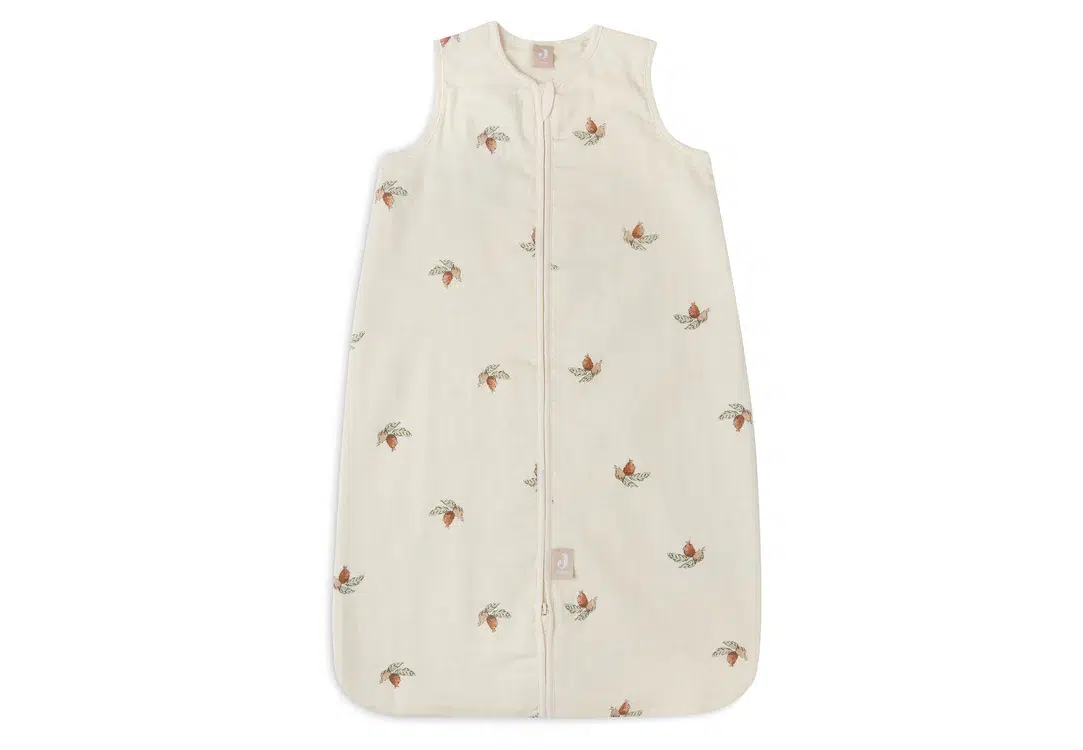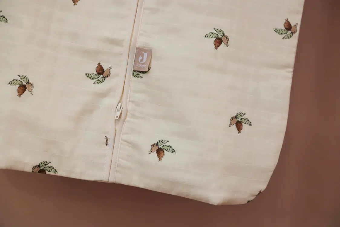 Découvrez notre jolie gigoteuse en gaze de coton pour bébé avec un motif Rosehip ! Légère en Tog 0,5 idéale pour printemps et été.