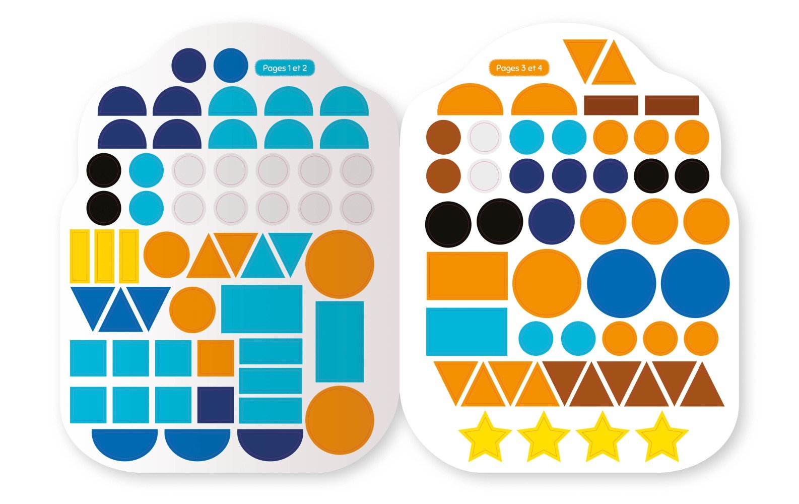 Un cahier de plus de 300 gommettes de formes géométriques, qui servent à compléter l’histoire de petit pirate, à travers un cahier de décors détachable.