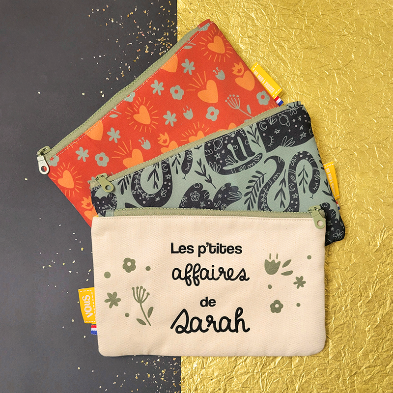 Une face écrue pour personnaliser, l’autre avec un de nos sublimes tissus 😉. Offrez une touche unique avec notre pochette personnalisée, parfaite pour allier style et praticité. Douceur et confort assurés grâce à sa doublure molletonnée en coton.