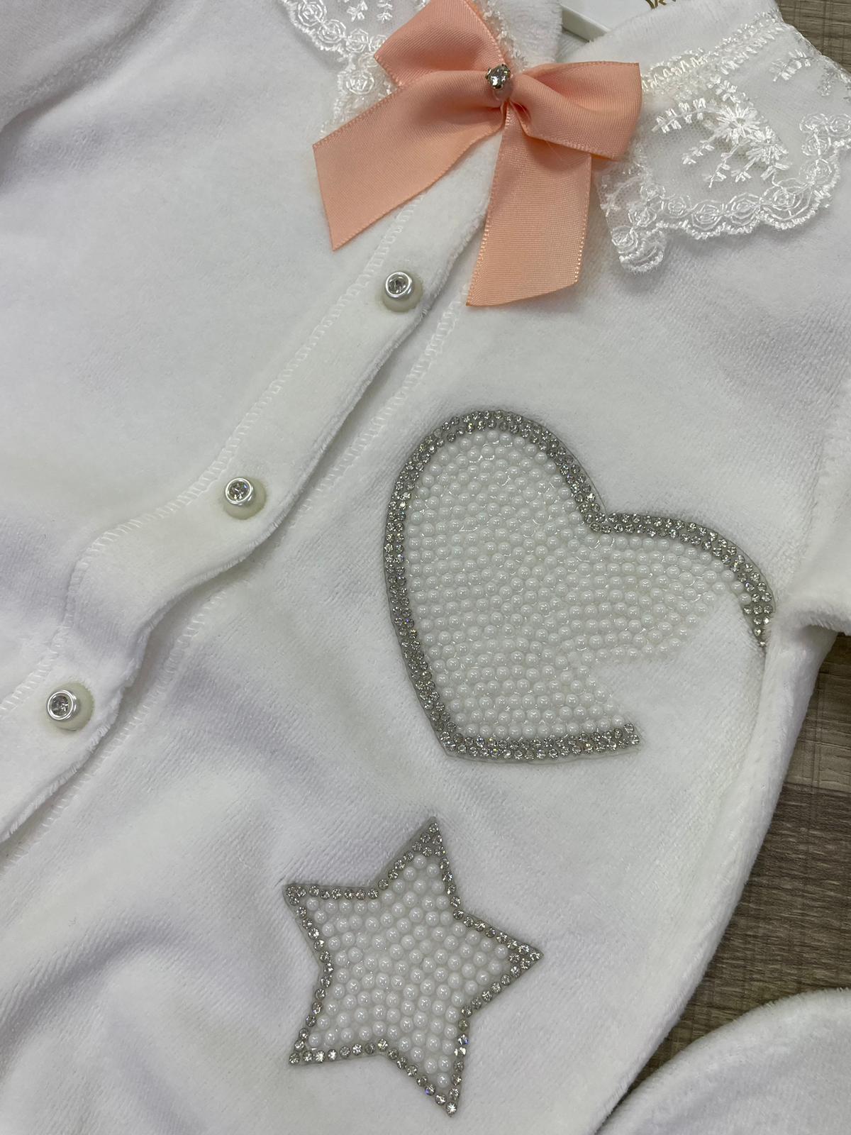 Très confortable. Tient au chaud. Col rond. Fermeture devant pour un meilleur maintien. Motif devant , sur bonnet et gant