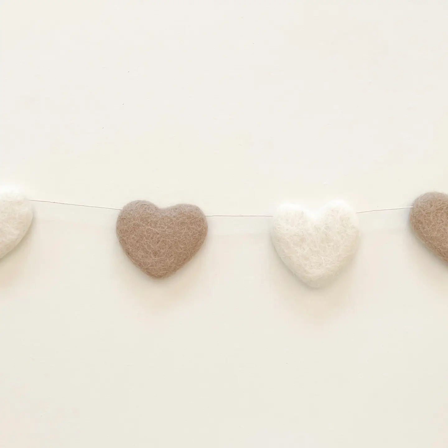 - Guirlande composée de 4 coeurs beige et 4 coeurs blanc en laine.