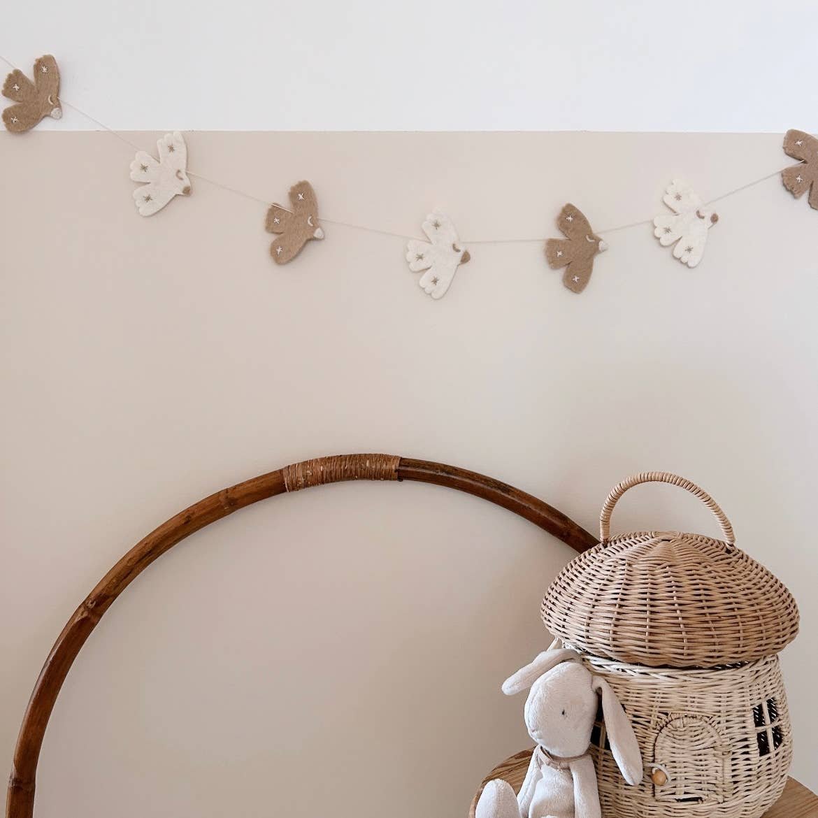 Apportez une touche de douceur dans la chambre de bébé avec cette guirlande oiseaux en laine feutrée.