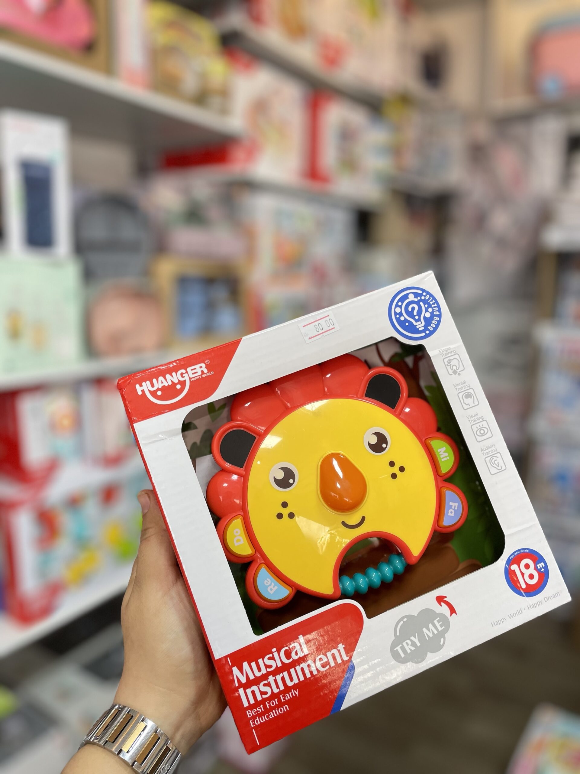 - Le jouet éducatif Huanger est sous la forme d’un lion.