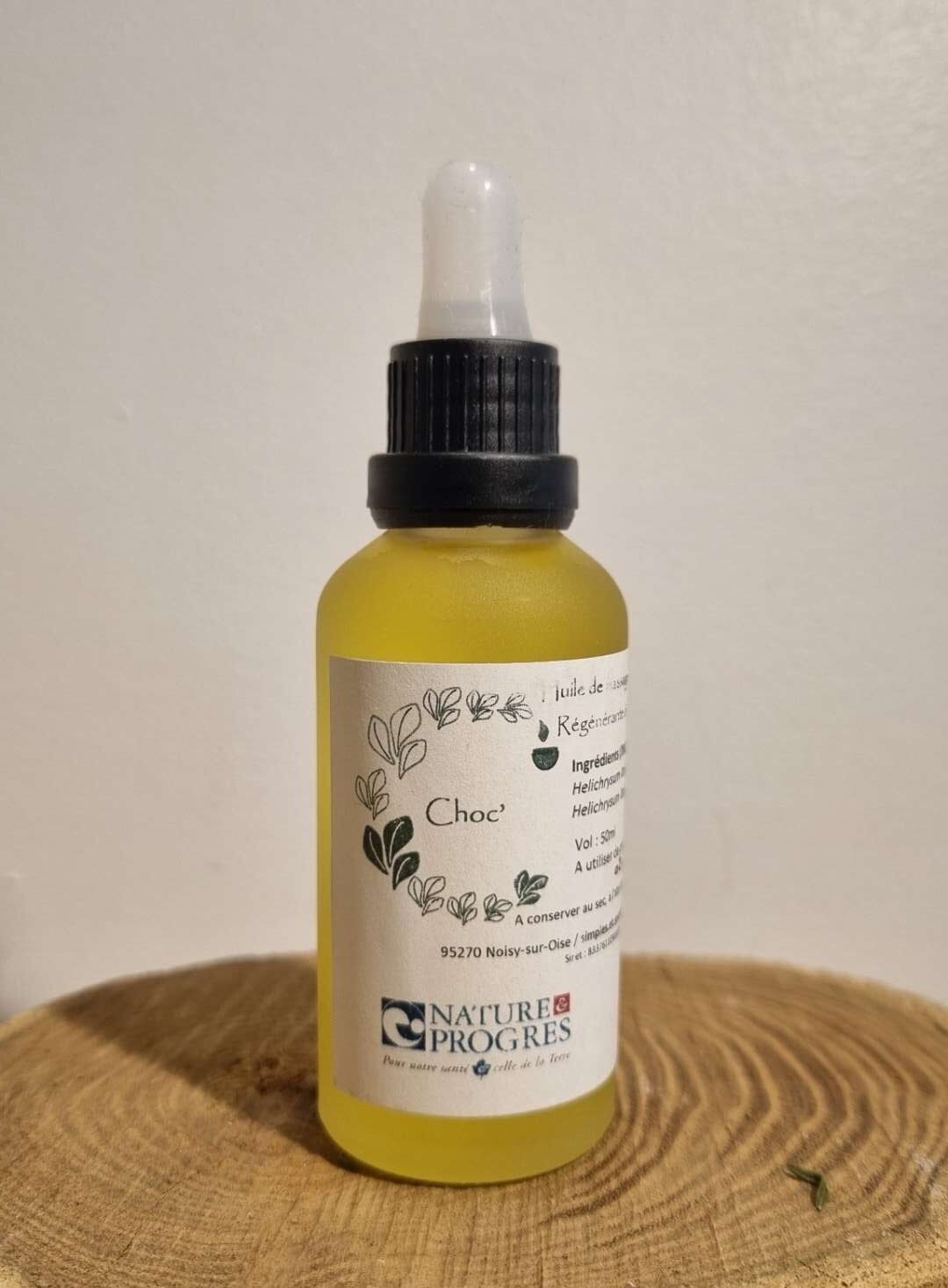 L’huile florale d’hélichryse, reconnue pour ses propriétés apaisantes et réparatrices, s’utilise en application locale sur les zones abîmées ou douloureuses du corps et des mains. Naturellement parfumée d’une légère odeur de curry, elle est certifiée Nature & Progrès, garantissant une composition 100 % naturelle, sans parfum, sans conservateur et non testée sur les animaux. Conditionnée dans un flacon en verre, elle offre une qualité authentique pour un soin doux et respectueux de la peau.