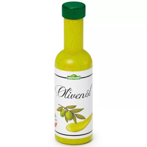 Cette bouteille d’huile d’olive en bois de la marque allemande Erzi s’intègre très bien dans un magasin, une kitchenette ou un étal de marché. Cette huile d’olive italienne de la marque maison « Erziland » est délicieuse sur une salade, mais elle est également idéale pour les tout-petits qui l’utilisent pour frire ou faire frire.