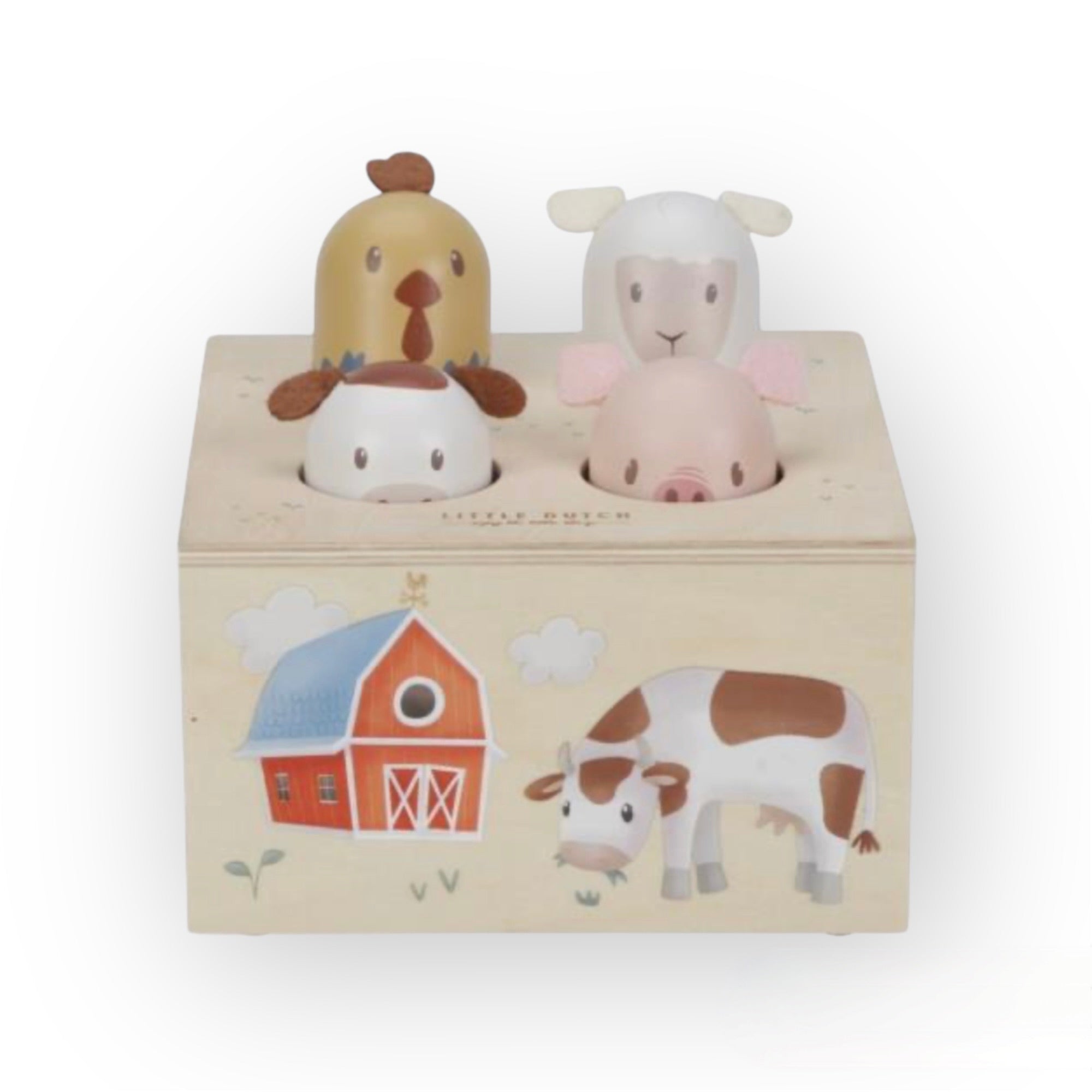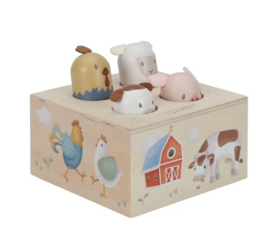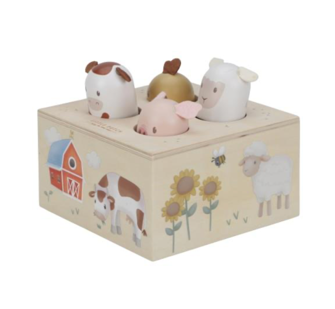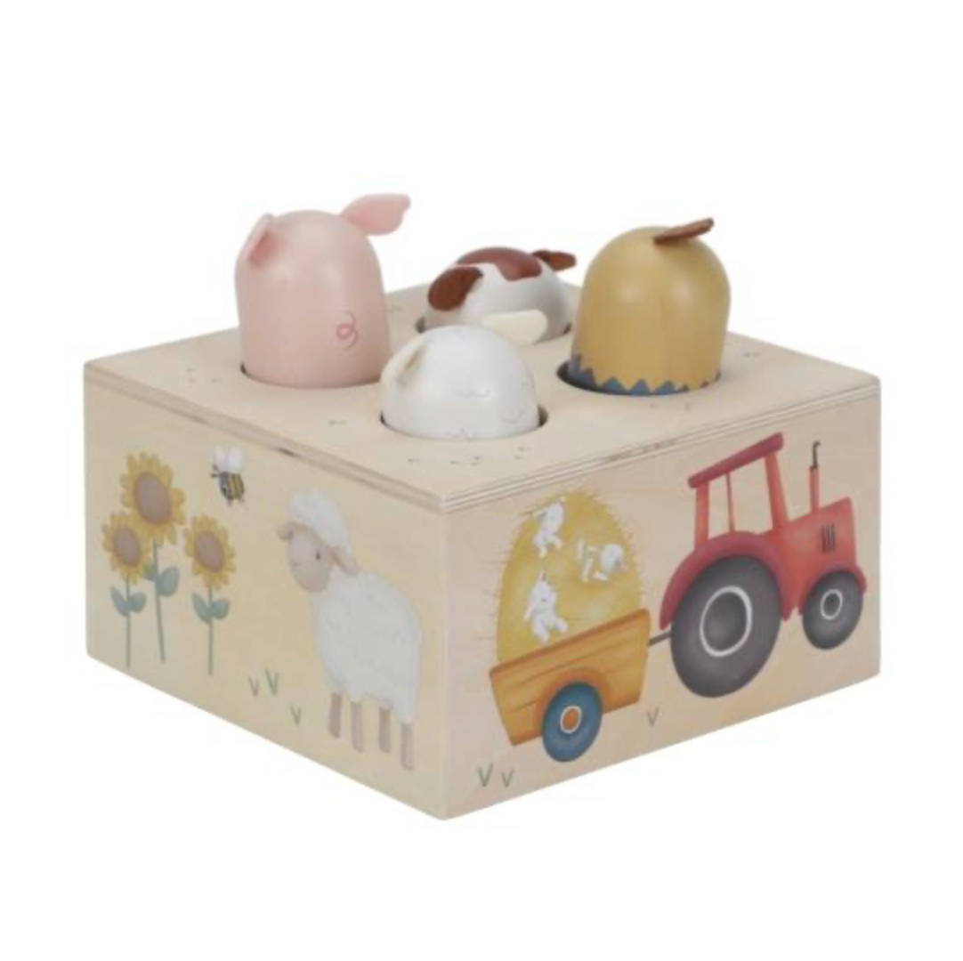 Le solide coffret en bois de ce jouet pop-up interactif est décoré de jolies illustrations de Little Farm, conçues pour stimuler l’imagination de votre petit ange. A partir de 12 mois