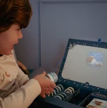 Après l’histoire, il suffit de ranger la torche et tous les accessoires dans la jolie boĂ®te de rangement.