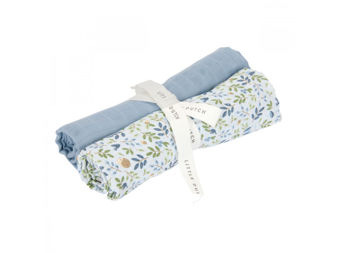 Cet ensemble se compose d’un lange au motif enchanteur Forest Adventure et d’un lange de couleur bleu uni Denim Blue.