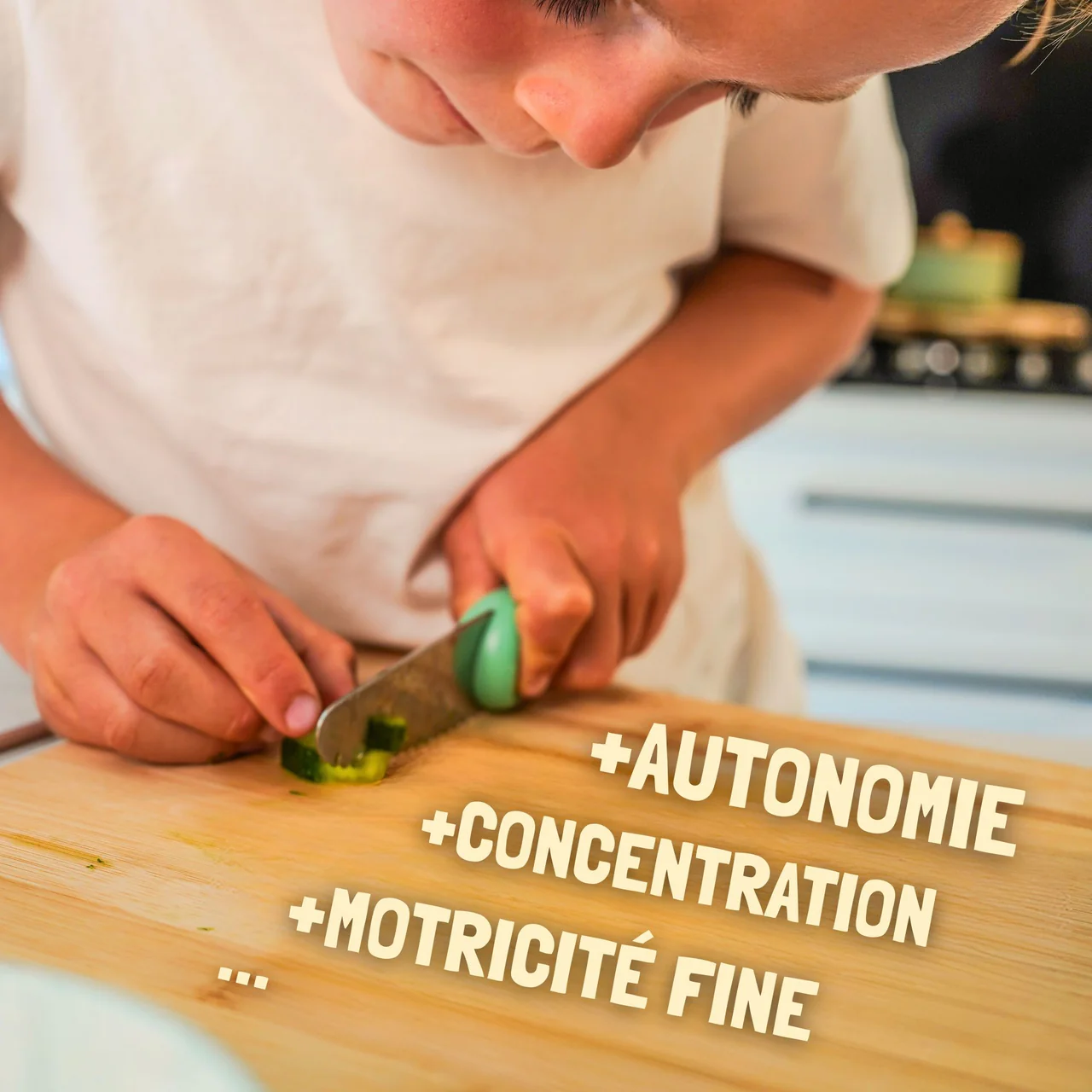 Coupe efficacement les aliments. Sécuritaire pour les doigts. Brevet déposé et créé par des Chefs & ergothérapeutes