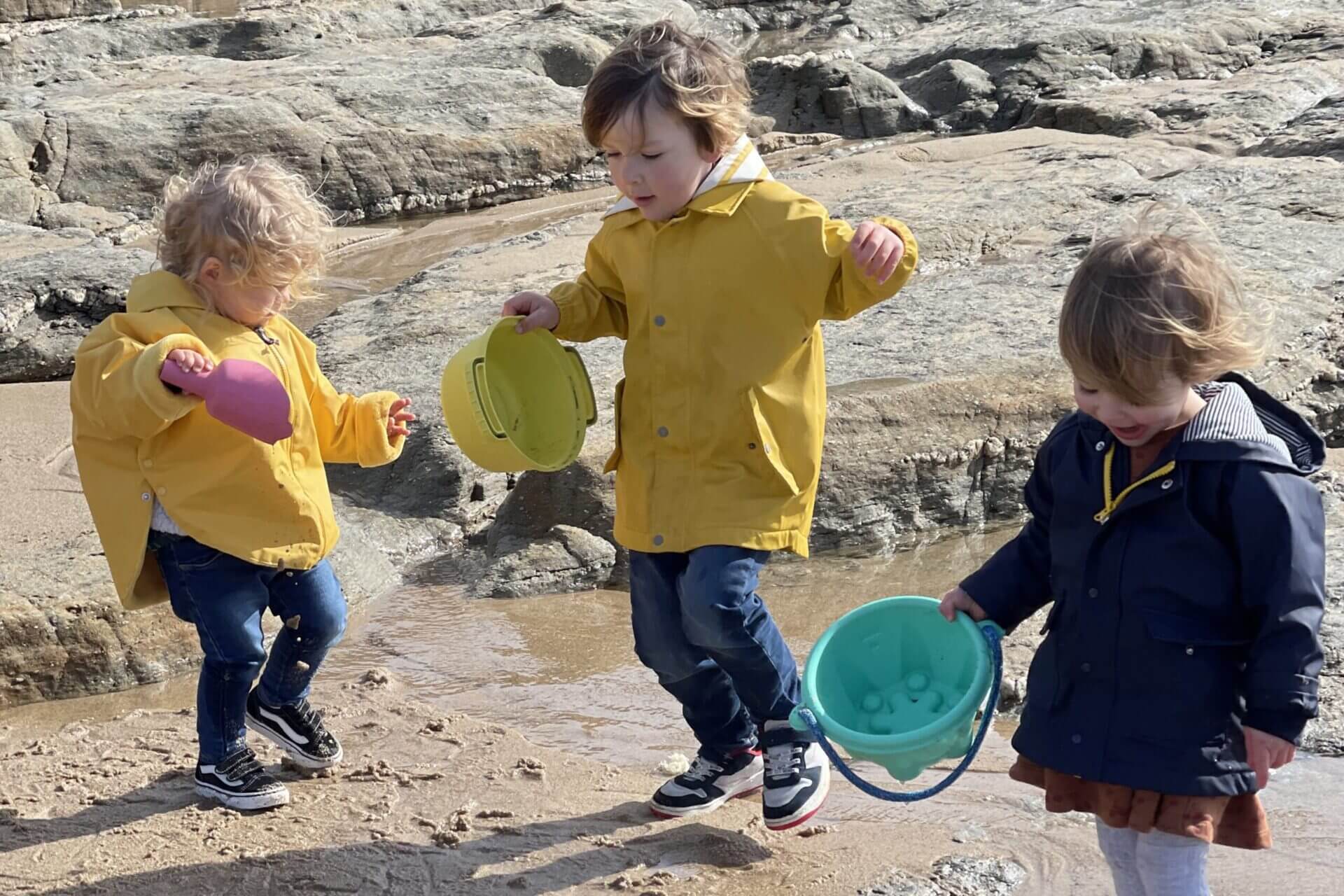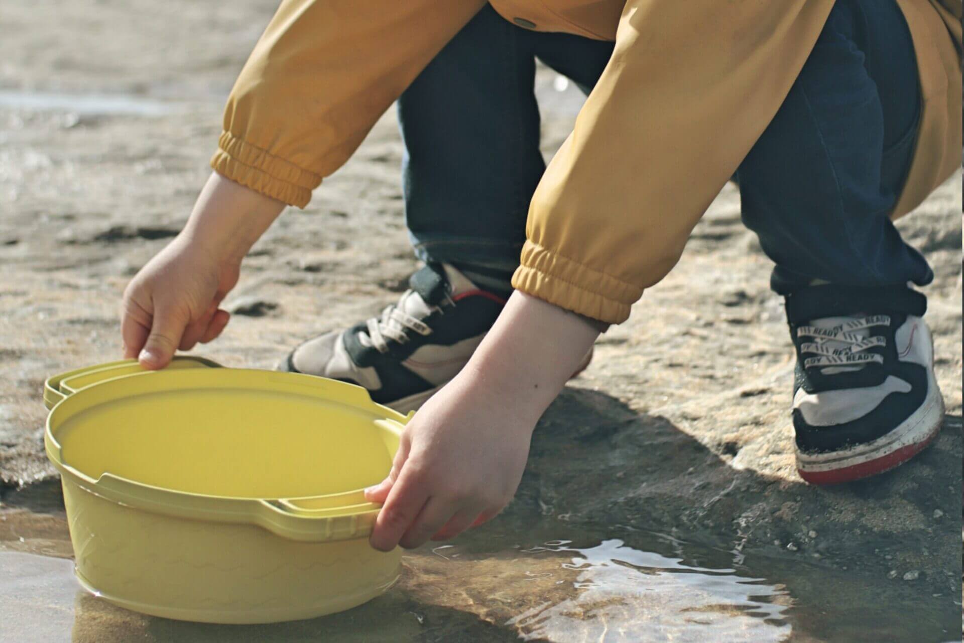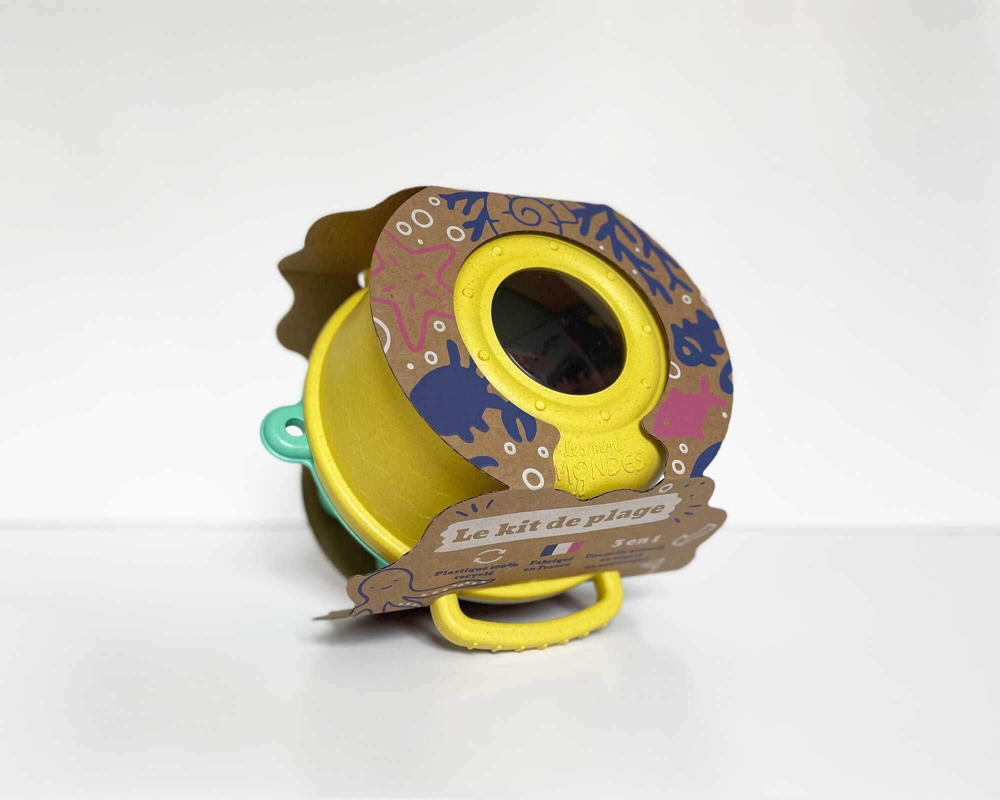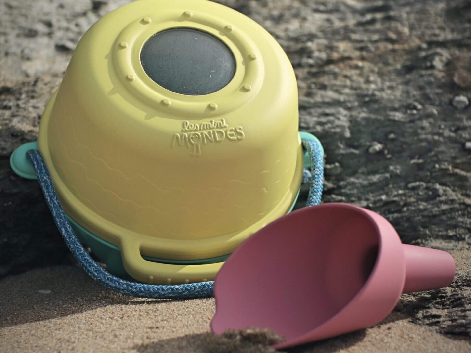 Le produit essentiel pour s’amuser dans le sable : le kit de plage des Mini Mondes ! Un set ultra fun avec une pelle, un seau, un arrosoir et un super aquascope pour explorer les fonds marins.  Côté conception, on a pensé à tout : ce set de plage est intégralement fabriqué en France, à partir de plastique recyclé (issu de bouteilles) et inclut un cordage pour le transporter facilement !