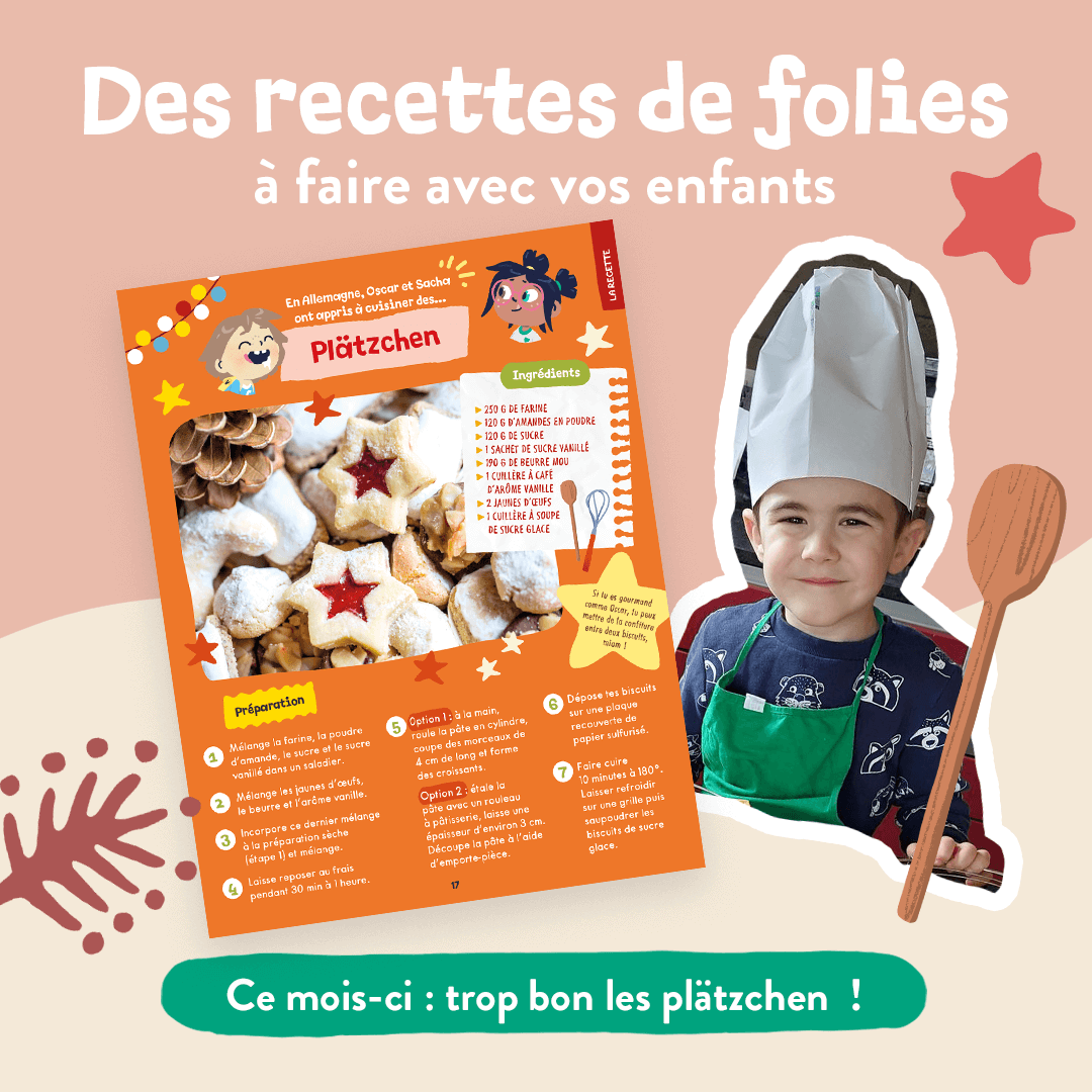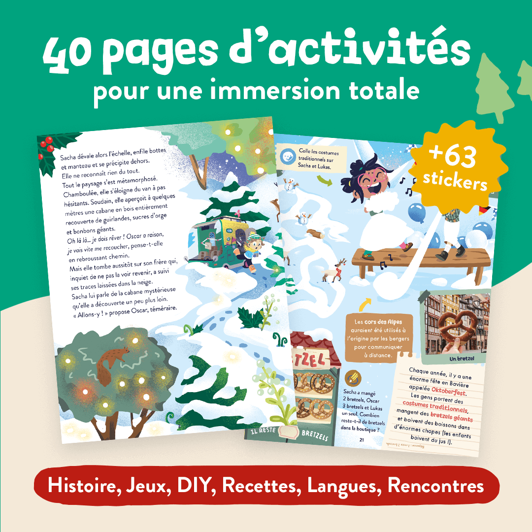 Oscar et Sacha posent enfin leur SuperVan en … ALLEMAGNE ! Dans ce numéro à l’unité, vos enfants vont adorer : 🌲 L’ambiance de Noël qui règne dans ce magazine … 🇩🇪 L’immersion totale de ce magazine de plus de 40 pages et de 63 gommettes 👉 En prime : une recette iconique qui plaira aux plus gourmands … Un magazine de 40 pages et de 63 stickers, adapté aux enfants de 3 ans et plus avec : une maxi chasse aux trésors, des histoires, des jeux, des initiations linguistiques, des coloriages, un DIY … Du contenu fun et pédagogique conçu par…