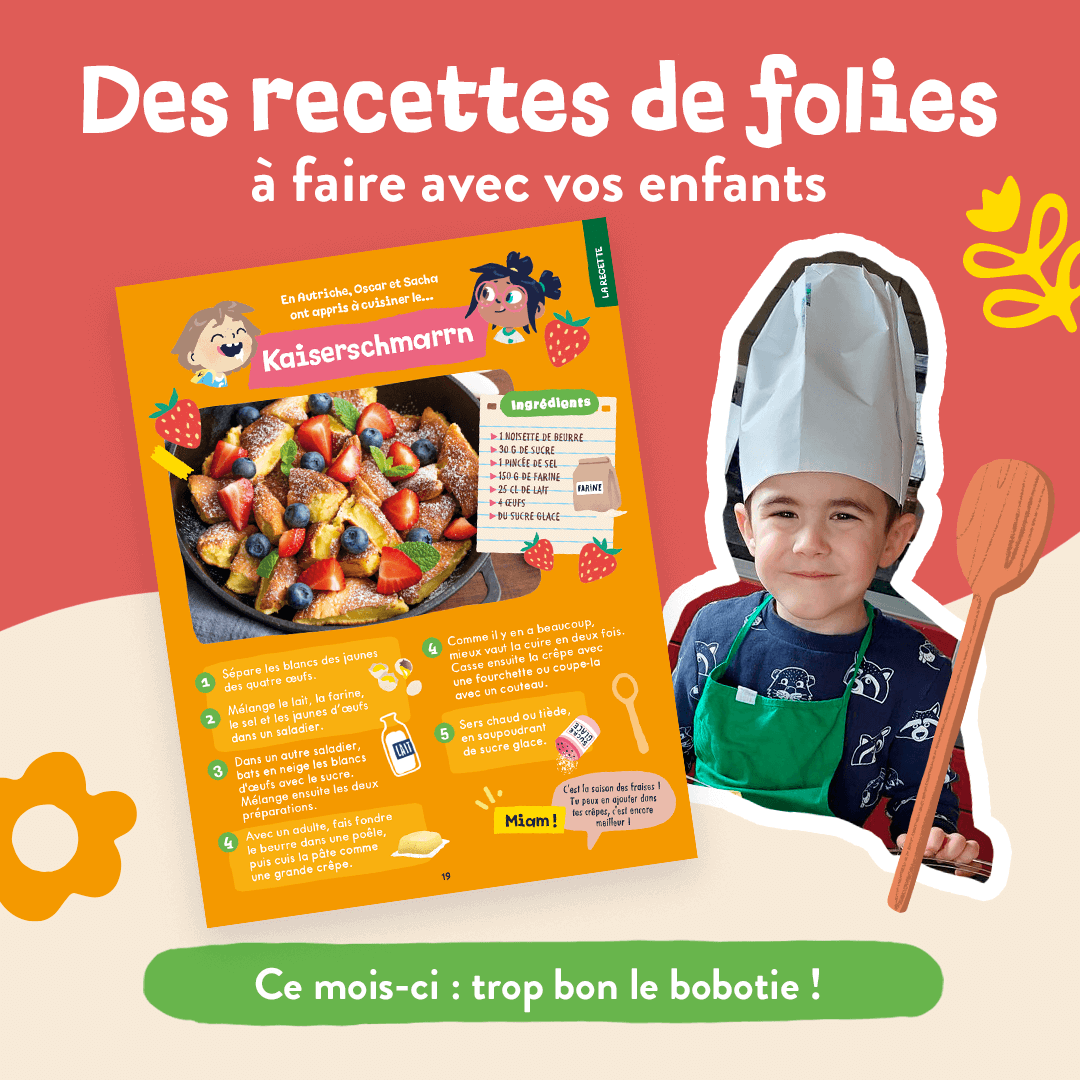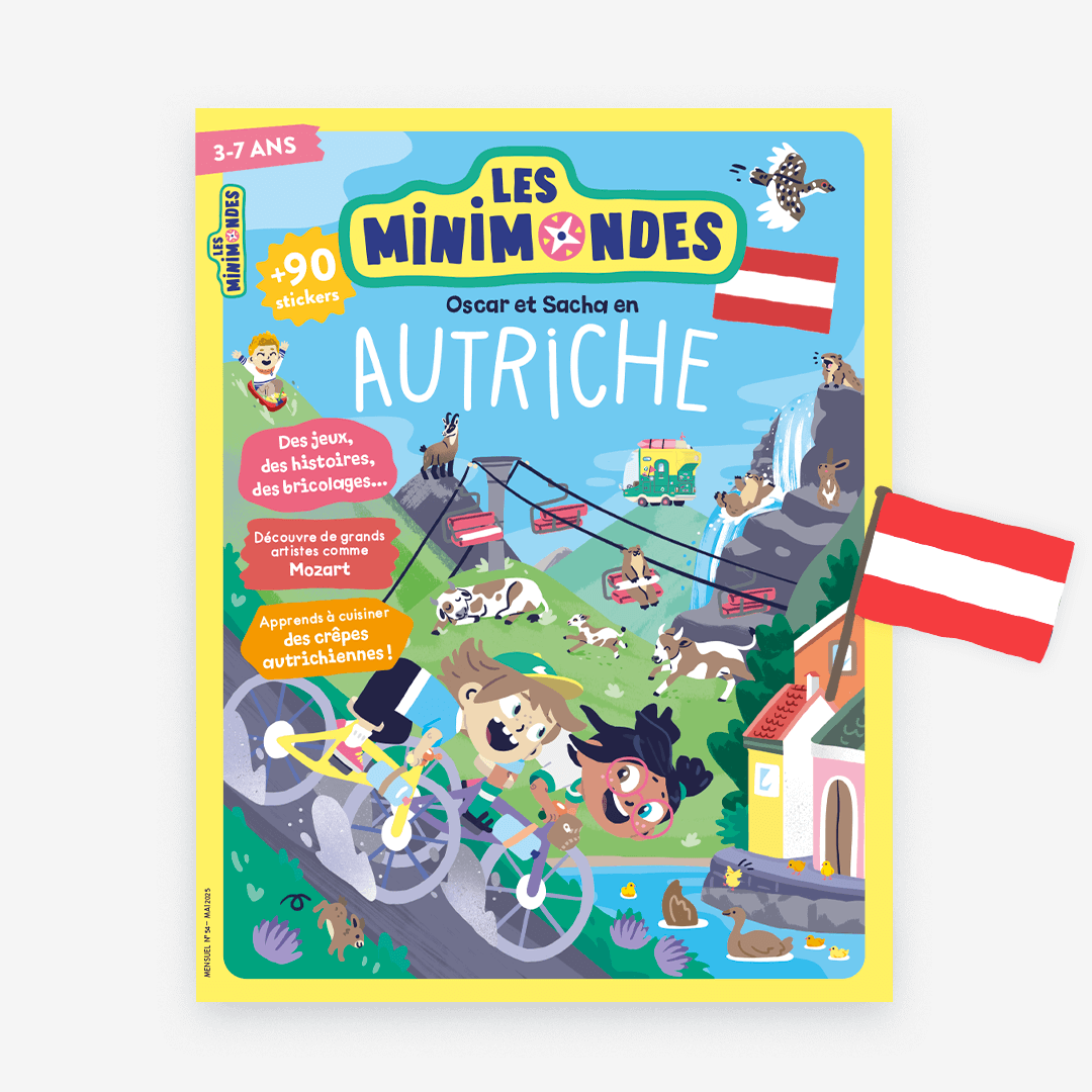 Direction l’Autriche ! Suivez les aventures d’Oscar et Sacha dans ce nouveau pays. Le 54ème de l’aventure ! Un pays qui mérite à être davantage connu … Dans ce numéro, vos enfants vont adorer : Fabriquer un super bricolage : une maison très originale, riche en couleurs ! Et vu le nombre de photos qu’on reçoit … C’est qu’il est trop génial ! Mijoter une spécialité locale (avec les parents …) : des crêpes ! Embarquer pour une super aventure dans le pays de Mozart … Un magazine pour enfants de 40 pages, adapté à leur âge, avec : des incroyables…
