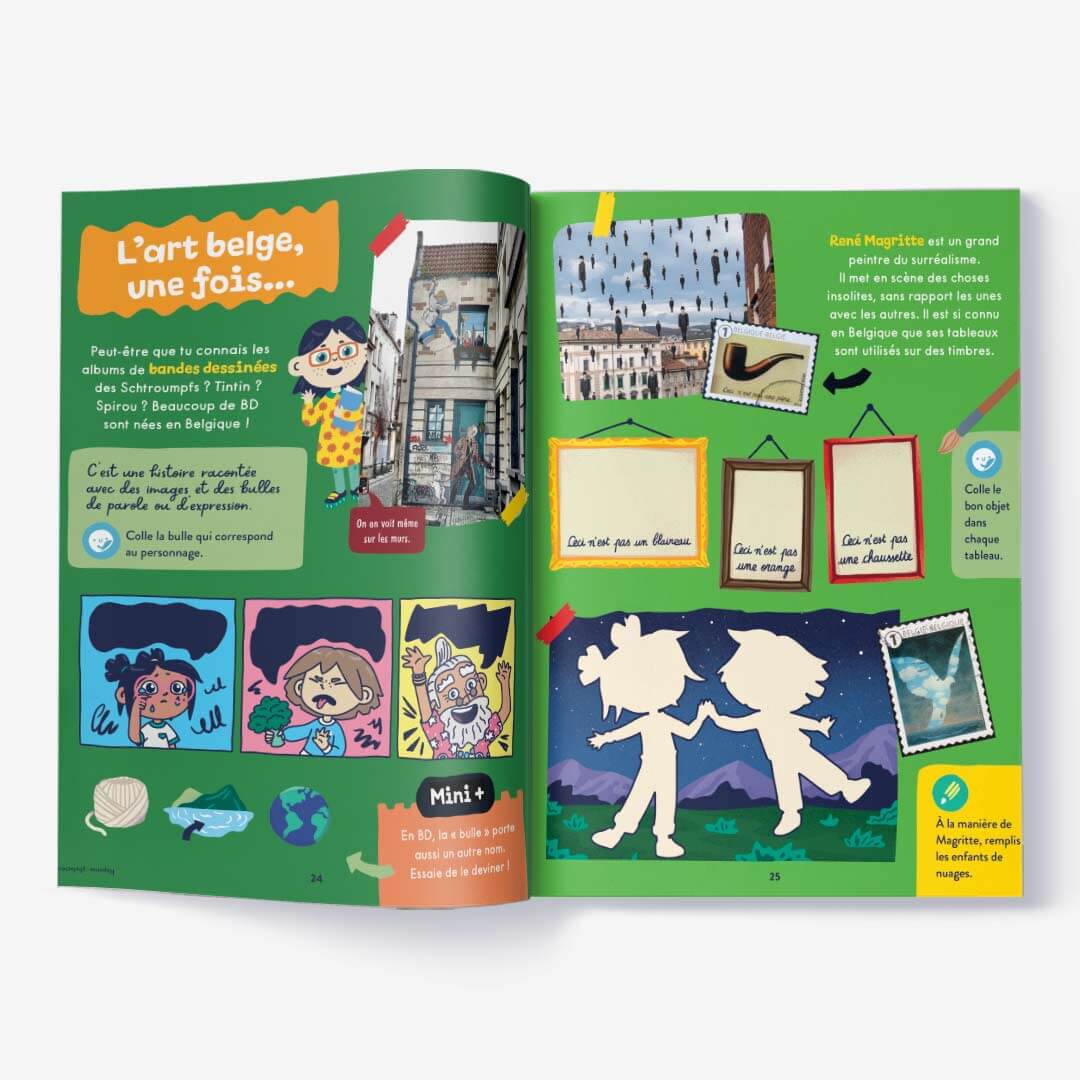 Le magazine sur la Belgique : Un magazine pour enfants de 40 pages, adapté à l’âge de tous avec : une maxi chasse aux trésors, des histoires, des jeux, des initiations linguistiques, des coloriages, du bricolage et plein de gommettes… Du contenu fun et pédagogique conçu avec des instits, des familles sur place, et une super équipe édito en interne pour apprendre en s’amusant.