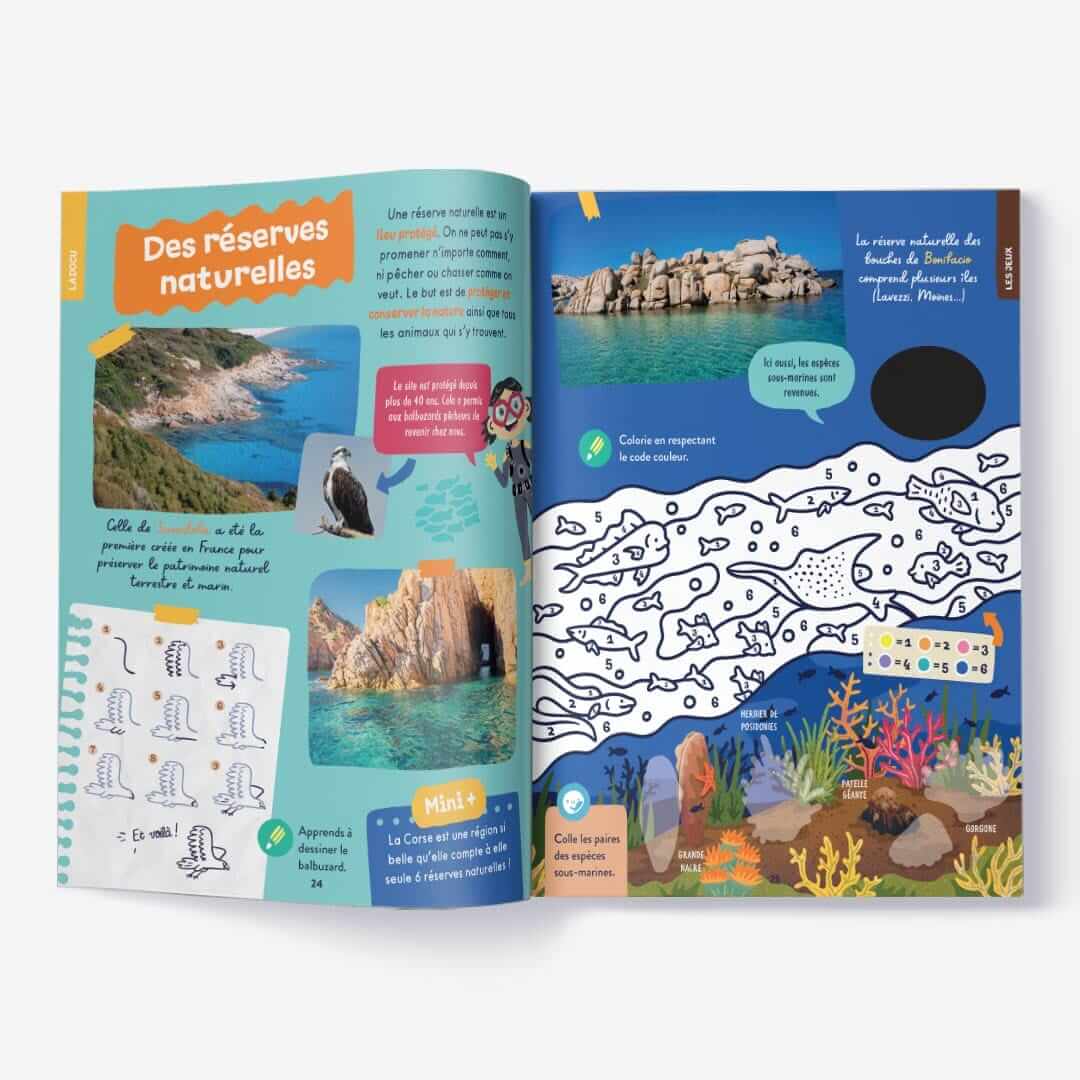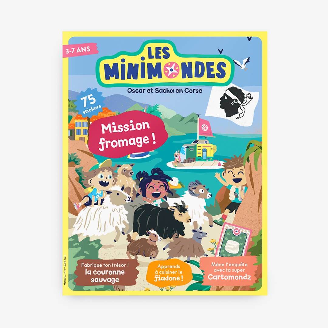 Oscar et Sacha posent leurs valises en Corse !  Dans ce numéro vos enfants vont adorer : 👉 Découvrir l’Ile de Beauté : la plus belle île du monde ? 😆 👉 Se régaler avec le délicieux fiadone 👉 Parcourir les plus belles réserves naturelles de la région. Un magazine de 40 pages et de 75 stickers, adapté aux enfants de 3 ans et plus avec : une maxi chasse aux trésors, des histoires, des jeux, des initiations linguistiques, des coloriages, un DIY … Bref une immersion complète ! Du contenu fun et pédagogique conçu par l’équipe des mini mondes…