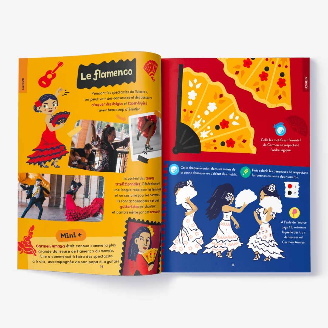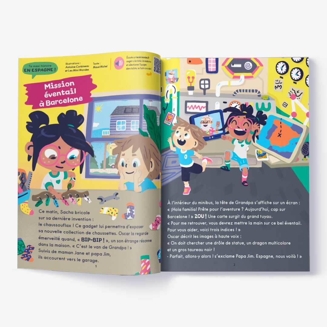 Nous voilà en Espagne ! Une destination chaleureuse et haute en couleurs réputée pour sa richesse musicale culturelle. Dans ce numéro, vos enfants vont adorer : résoudre l’énigme de Granpa lors d’une maxi chasse aux trésors fabriquer des castagnettes gambas et danser le flamenco réaliser une délicieuse recette de tapas Un magazine pour enfants de 40 pages, adapté à l’âge de tous avec : une maxi chasse aux trésors, des histoires, des jeux, des initiations linguistiques, des coloriages, de la musique et plein de stickers… Du contenu fun et pédagogique conçu avec des instits, des familles sur place, et une…