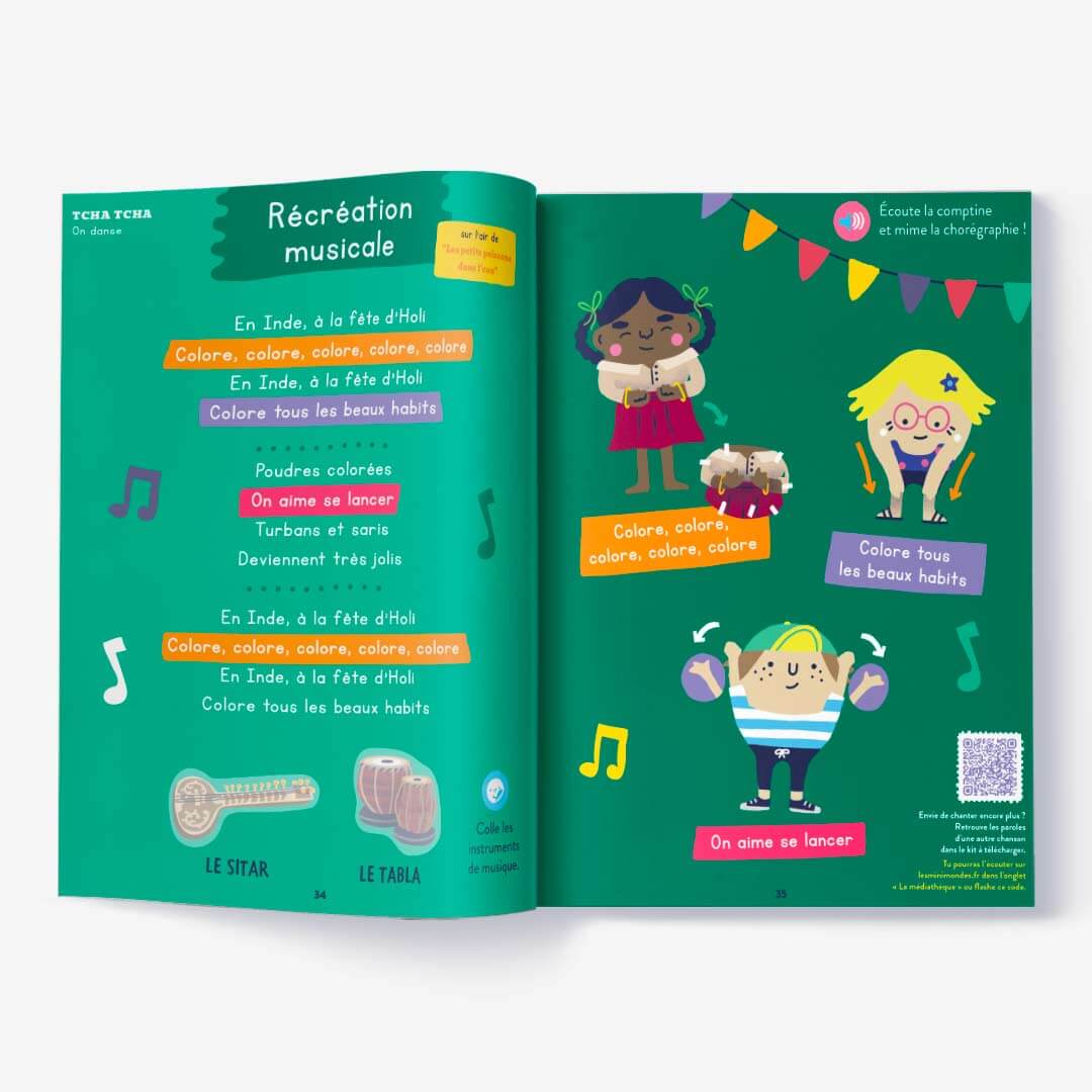Namasté ! On part à la découverte de l’Inde ! Dans ce magazine, vos enfants vont adorer : Découvrir le merveilleux Taj Mahal ! Apprendre à écrire en sanskrit. Une initiation au yoga Dans ce magazine de 44 pages adapté à l’âge de vos enfants, vous allez retrouver : des histoires, des jeux, des autocollants (beaucoup d’autocollants !), des initiations linguistiques, des coloriages, de la musique… Du contenu fun et pédagogique conçu avec des instits, des experts Montessori, des familles sur place, et une super équipe édito en interne pour apprendre en s’amusant.
