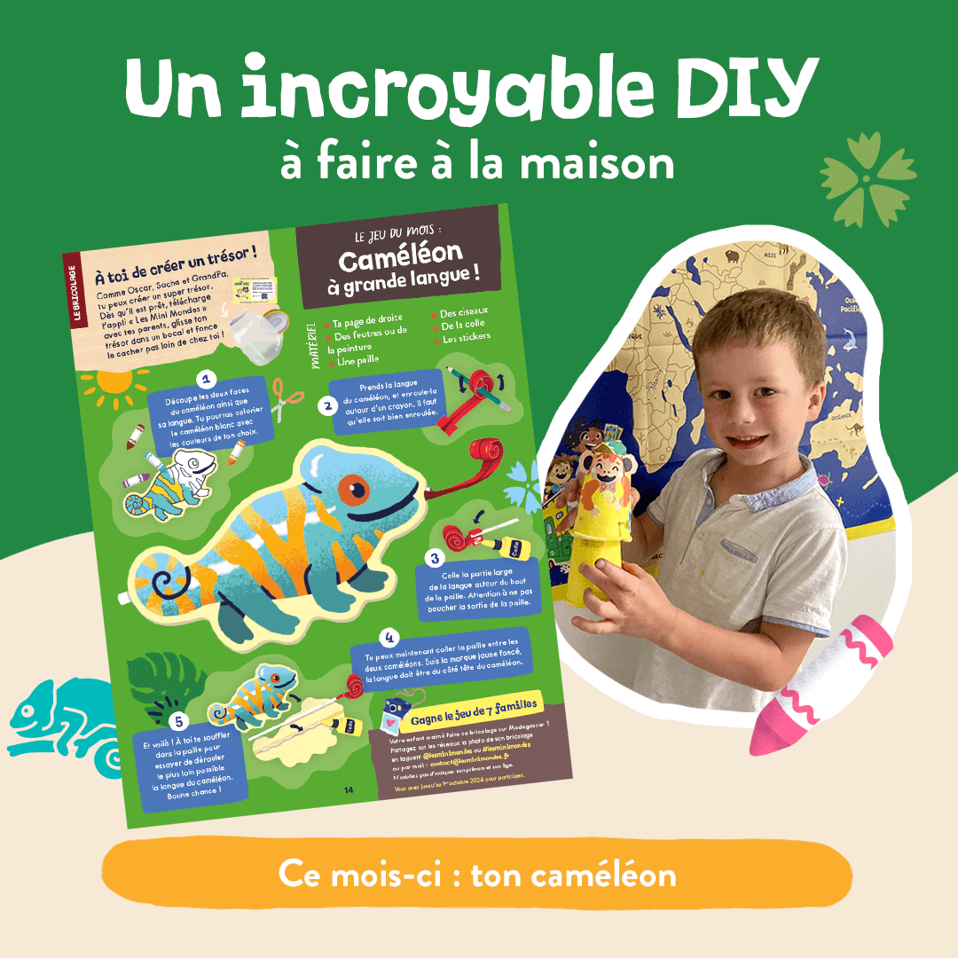 Oscar et Sacha se rendent à Madagascar ! Dans ce numéro vos enfants vont apprendre à fabriquer un caméléon à grande langue, vivre de folles aventures dans la forêt malgache, cuisine un gâteau de riz, et apprendre un tas de choses sur la faune de Madagascar … Un magazine pour enfants de 40 pages, adapté à l’âge de tous avec : une maxi chasse aux trésors, des histoires, des jeux, des initiations linguistiques, des coloriages, du bricolage et plein de gommettes… Du contenu fun et pédagogique conçu avec des instits, des familles sur place, et une super équipe édito en…