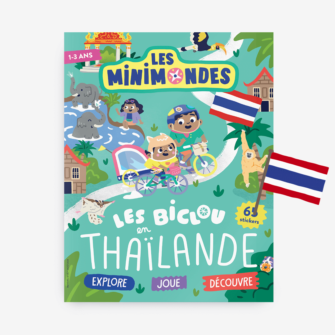 La famille Biclou arrive en Thaïlande ! Dans ce numéro vos enfants vont apprendre à jouer au Memory avec les animaux de la forêt tropicale, découvrir les marchés flottants et se détendre sur les plages paradisiaques ! Un magazine pour enfants de 34 pages, adapté à l’âge de tous avec : des histoires, des jeux, des photos, des coloriages, du bricolage et plein de gommettes… Du contenu fun et pédagogique conçu avec des instits, des familles sur place, et une super équipe édito en interne pour apprendre en s’amusant.