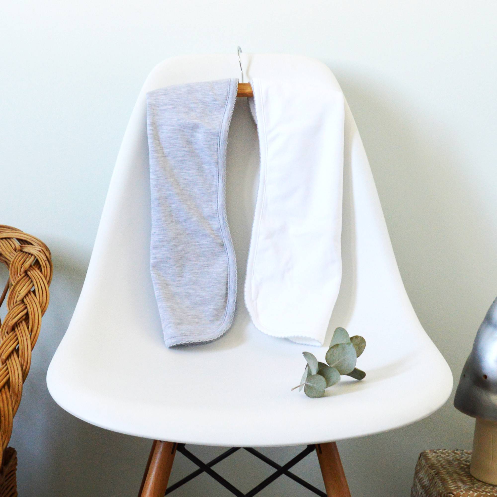 + 1 bavoir d’épaule blanc à bordure grise en coton pima ~ taille unique