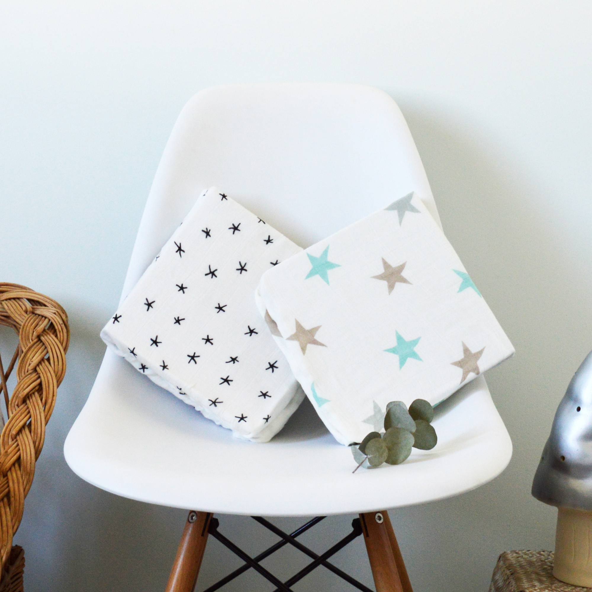 + 1 housse de table à langer à motif étoiles pastel bleu, vert, taupe en viscose de bambou