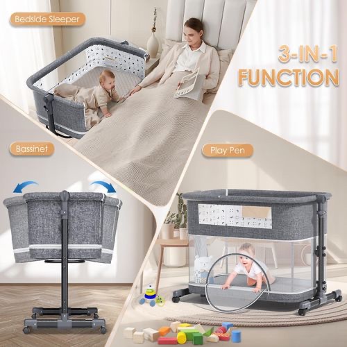 Lit Cododo Bébé Multifonction 3 en 1 – Lit Cododo + Berceau + Parc – Réglable & Sécurisé