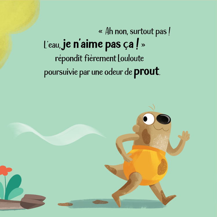 Ici, retrouvons petite loutre qui est pleine de boue mais qui n’aime pas du tout le savon… qui n’aime pas du tout ça!!!