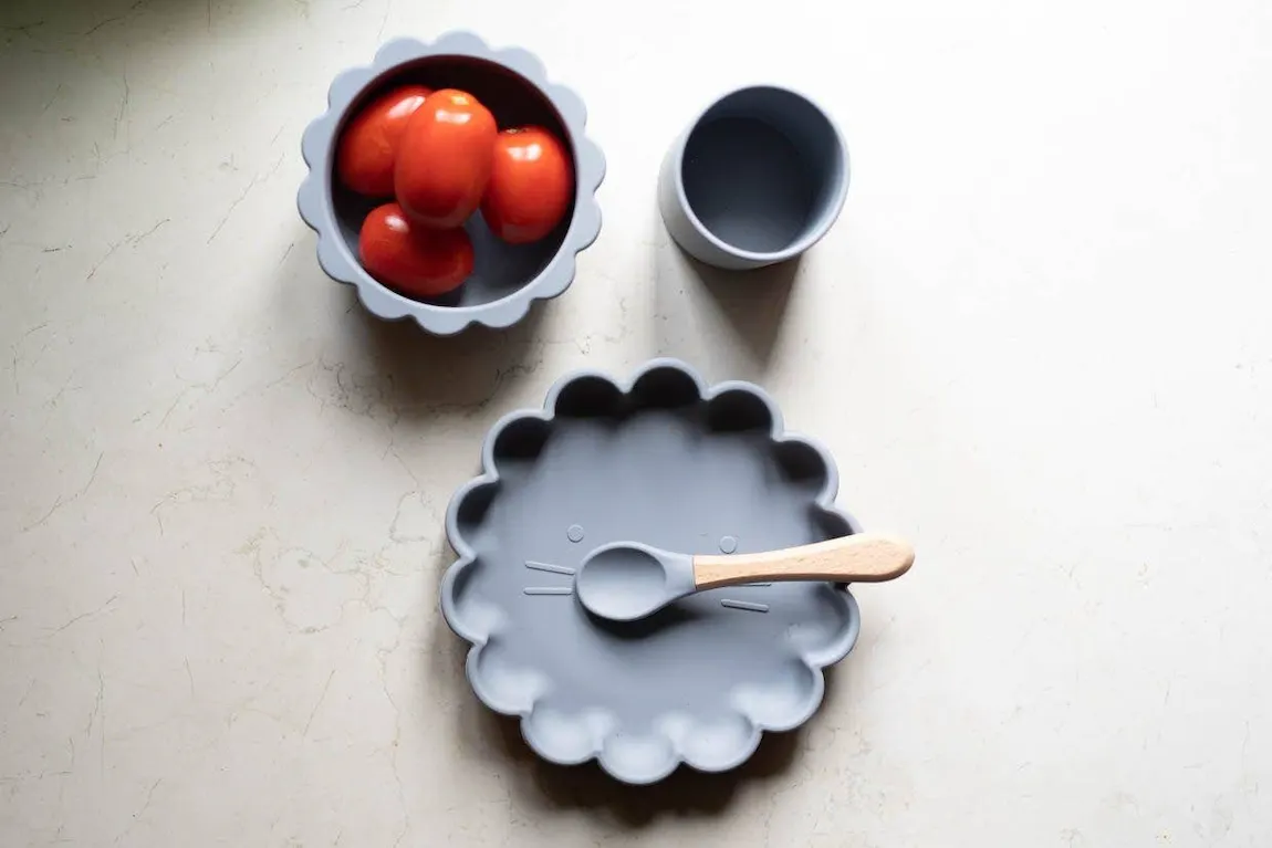 Lot de 2 cuillères bébé silicone et bois Gris perle/Camel