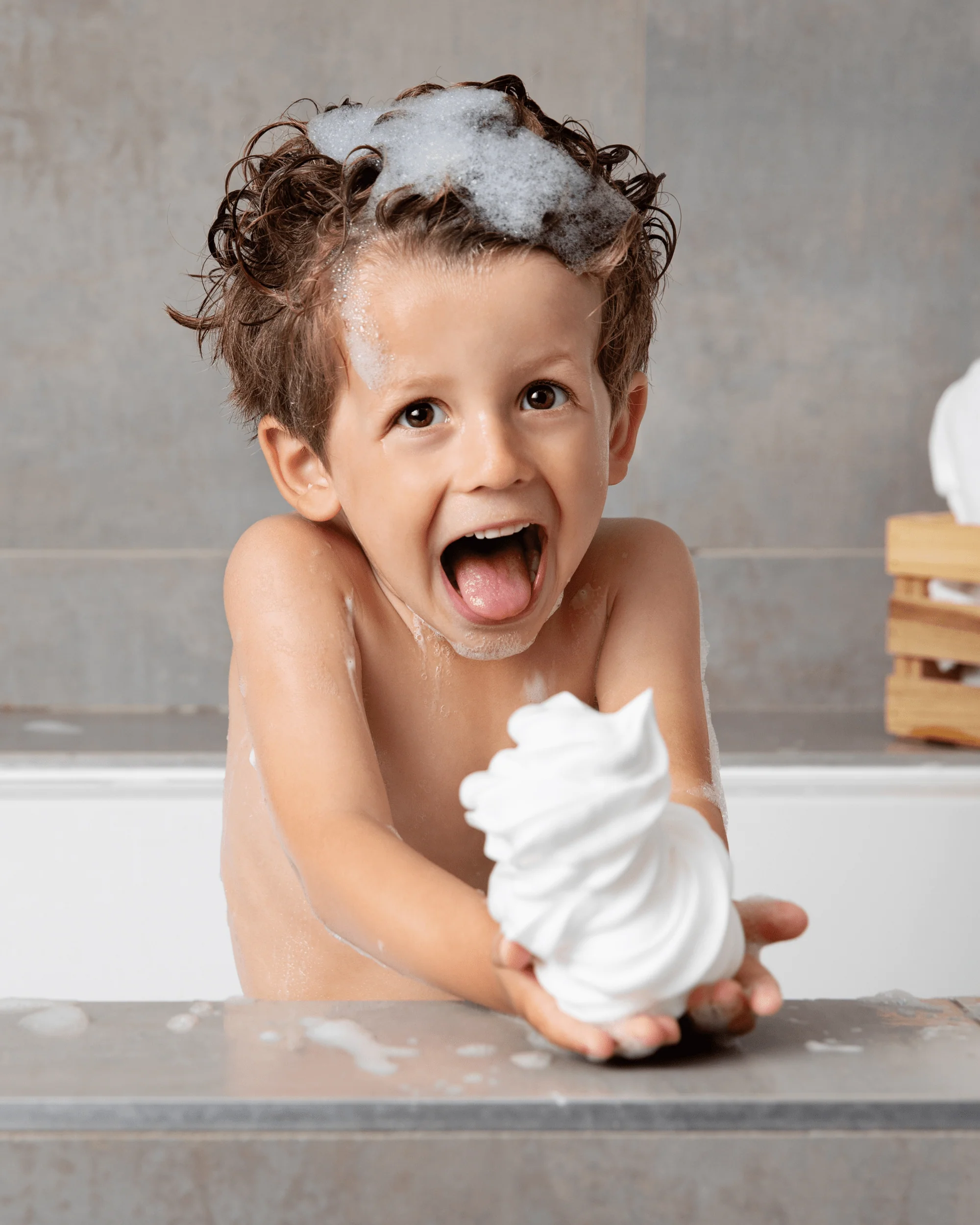 Ici, une chantilly lavante et hydratante adaptée pour le corps et les cheveux qui se rince facilement.