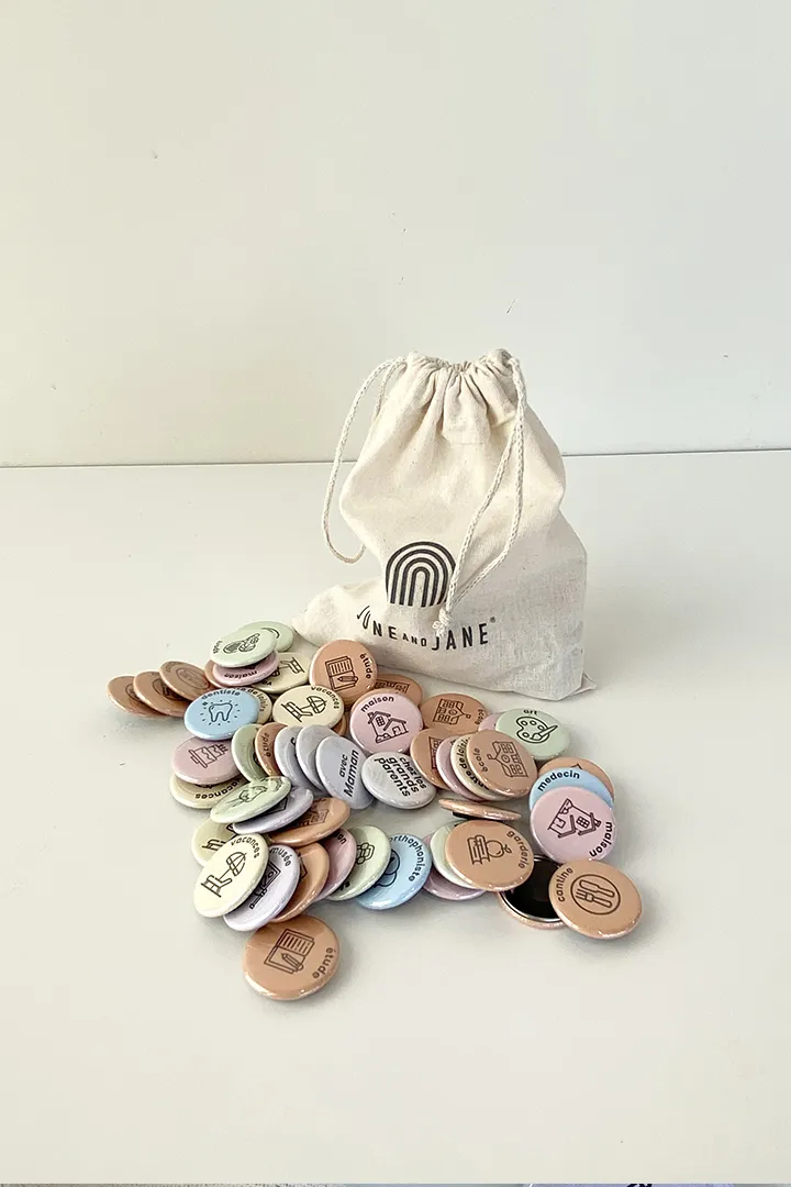 Si vous souhaitez personnaliser davantage votre semainier, vous pouvez rajouter des badges spécifiques. Classés par couleur en fonction de l’activité, ces badges magnétiques apporteront une touche personnelle à votre semainier. Le semainier est disponible ici. Sélectionnez vos badges dans le menu déroulant ci-dessous.