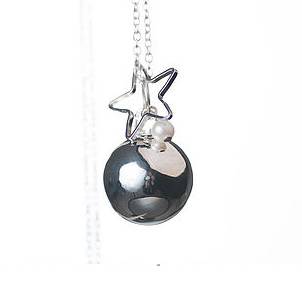 * bola de grossesse : beau bijou, tel un sautoir, avec son tintillement qui rythmera les mouvements de la future maman pour ainsi rassurer et apaiser bébé. Sa pierre blanche précieuse symbolisera la future naissance à venir.