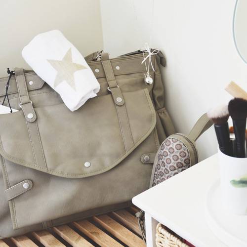 « Maman coquette » sac à langer + bola précieux + lange étoile beige