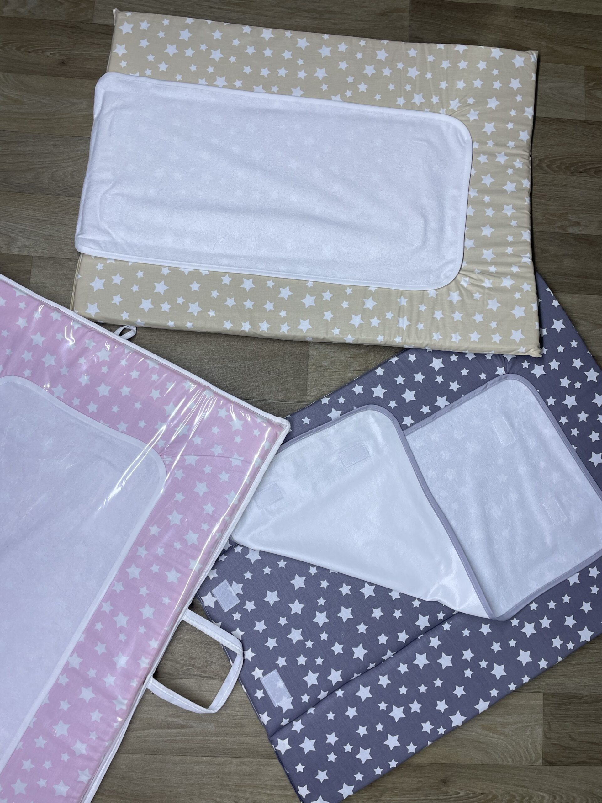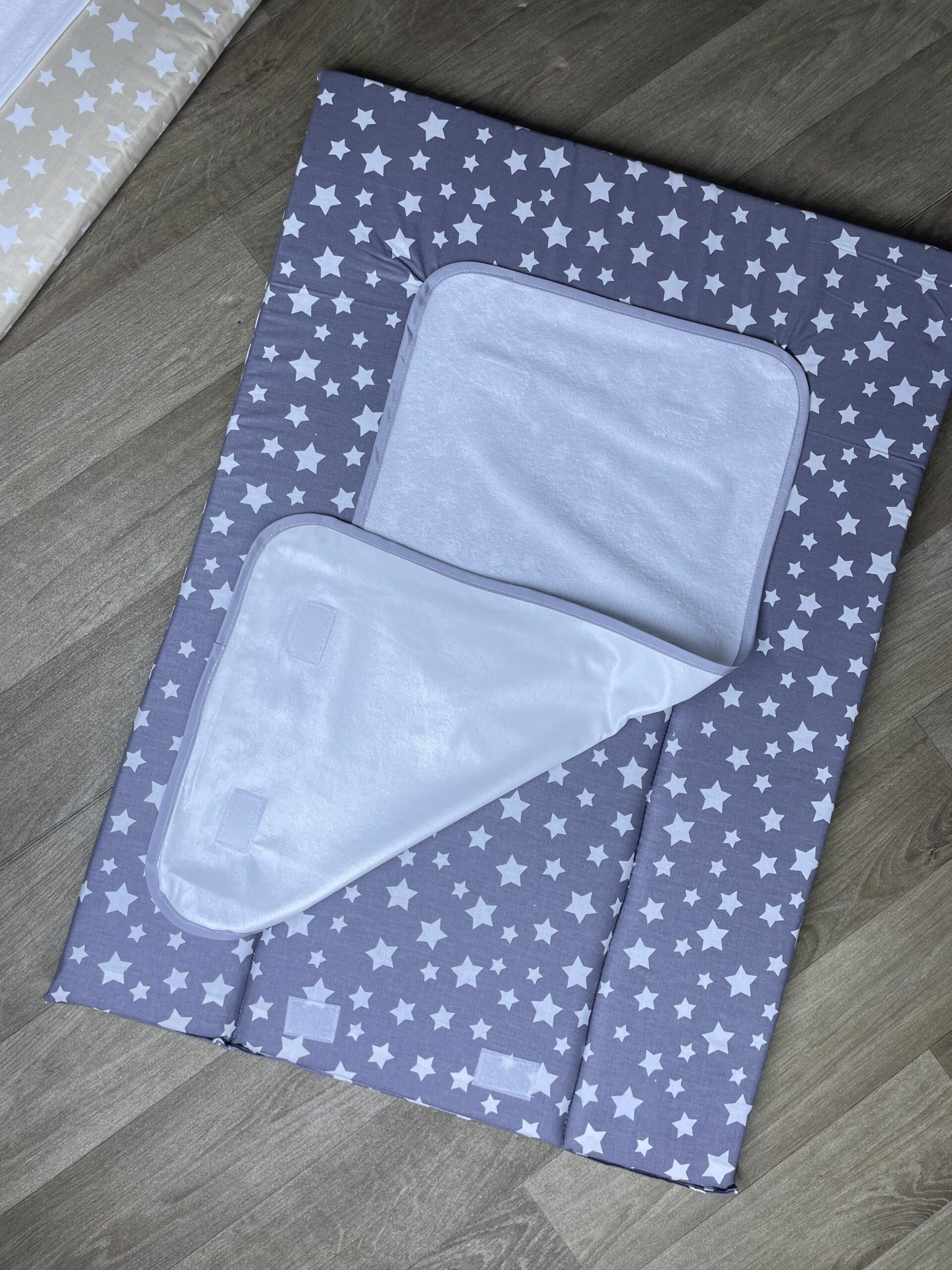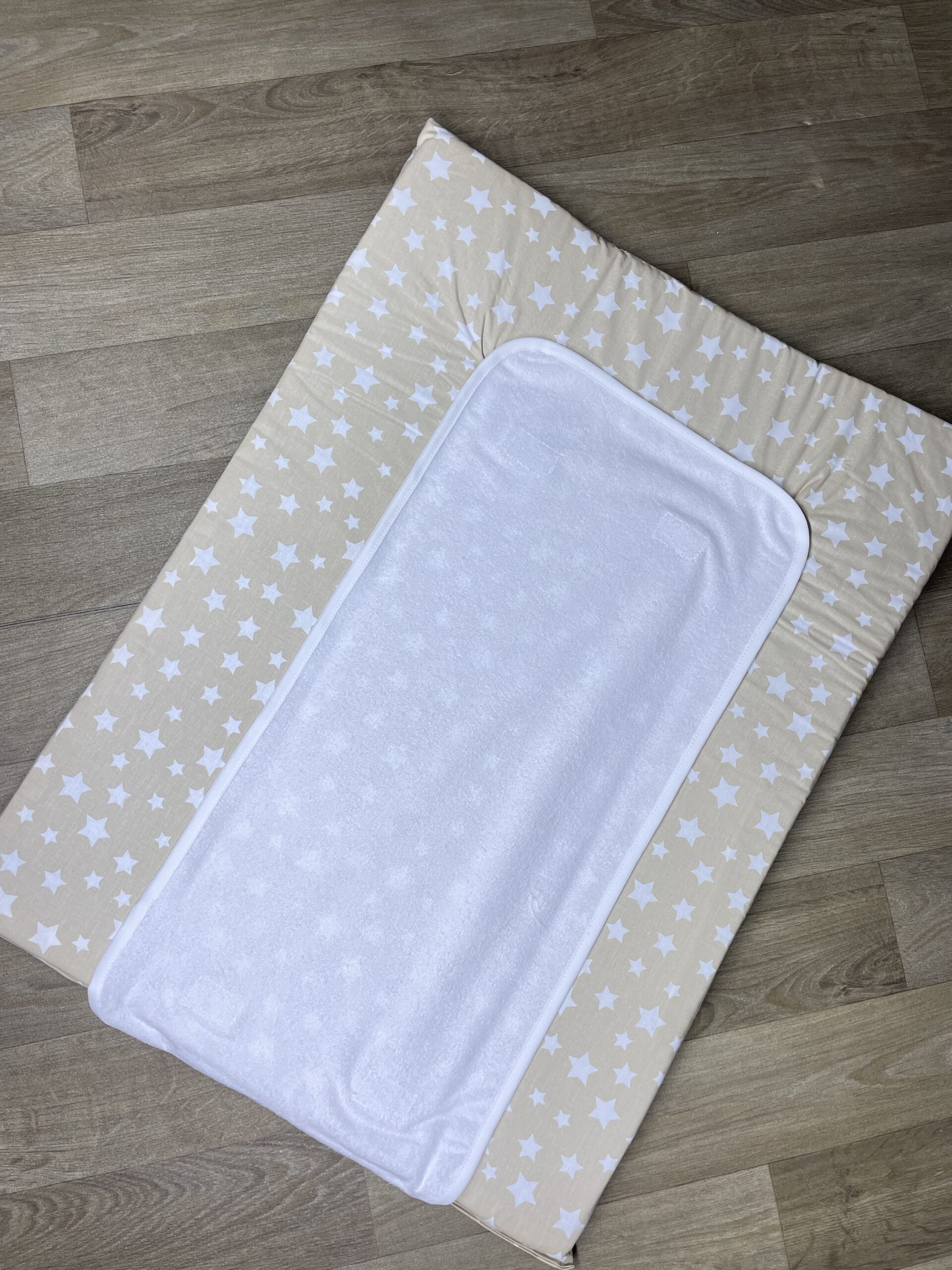 - Tapis à langer en éponge 100% coton, lavable en machine.