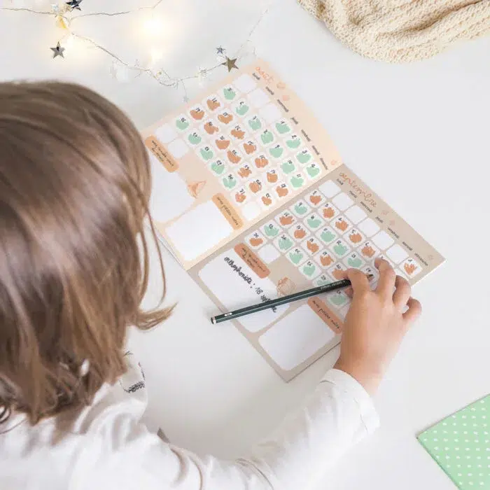Chaque mois, votre enfant dispose d’un petit planning mensuel : 1 page = 1 mois . Les jours du mois sont faciles à visualiser et lui permette de bien distinguer les nuits chez maman et les nuits chez papa, l’objectif étant de diminuer le stress lié aux changements de maison .