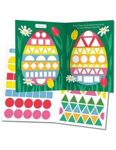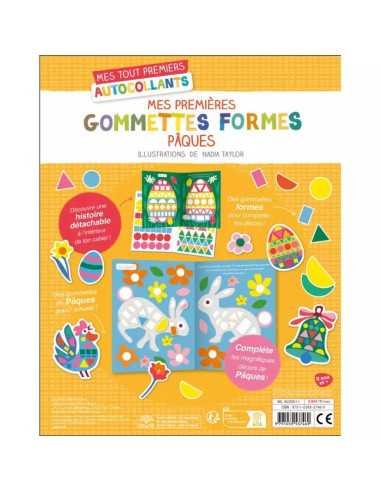 Découvrez le cahier Mes premières gommettes formes Pâques de la collection « Mes tout premiers autocollants » de Auzou, un cahier avec 500 gommettes que les enfants dès 3 ans prendront plaisir à positionner sur de magnifiques décors de Pâques.