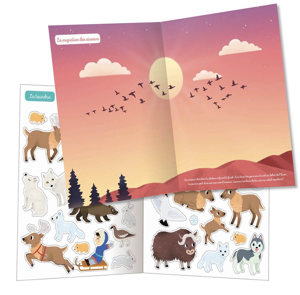 Un cahier de 500 autocollants repositionnables, pour animer un cahier de décors détachable, autour du thème de l’hiver avec des animaux et personnages très mignons qui vont séduire les petits et les grands !