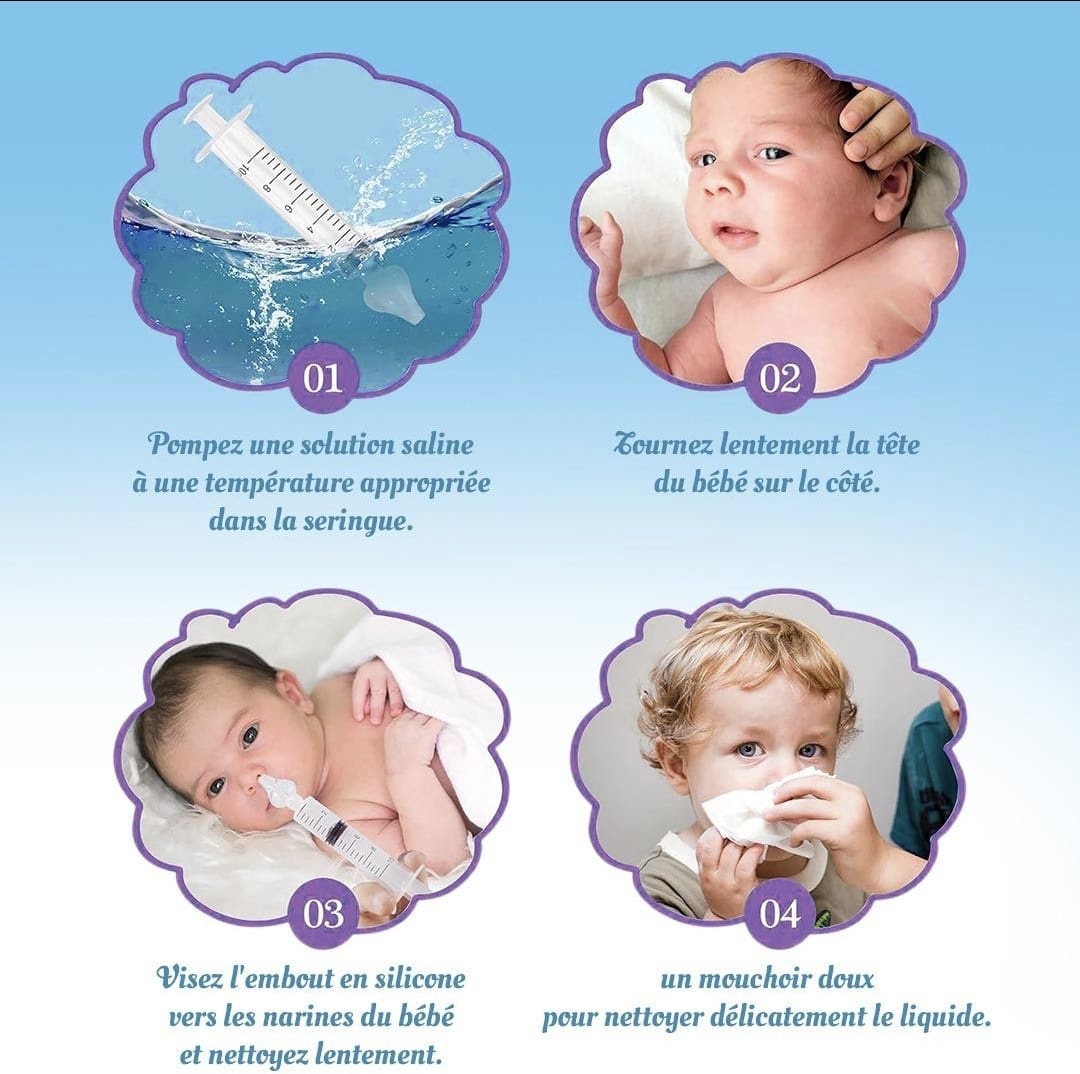 Offrez à votre bébé une respiration libre et confortable avec les seringues nasales « Notre Bébé ».