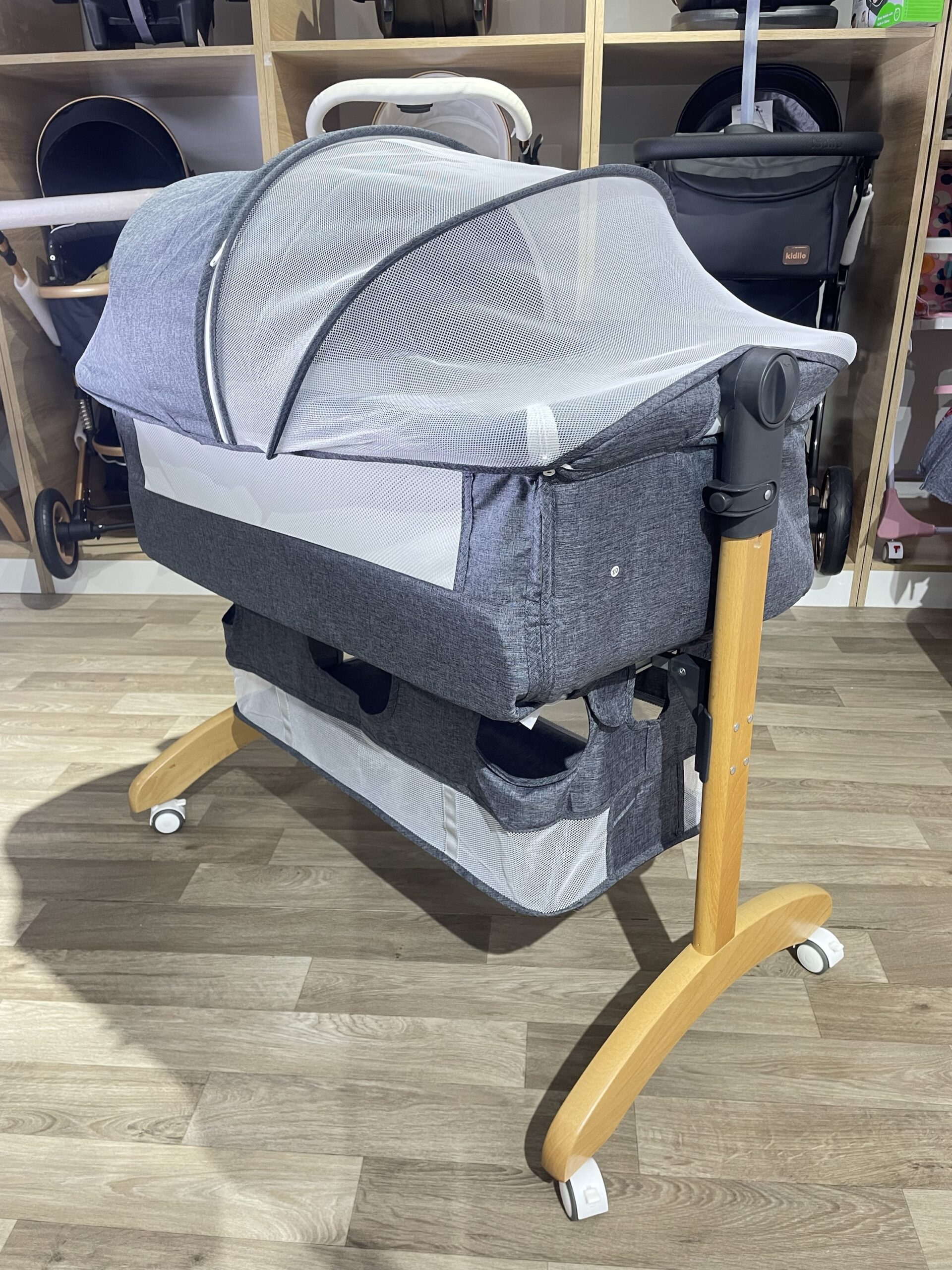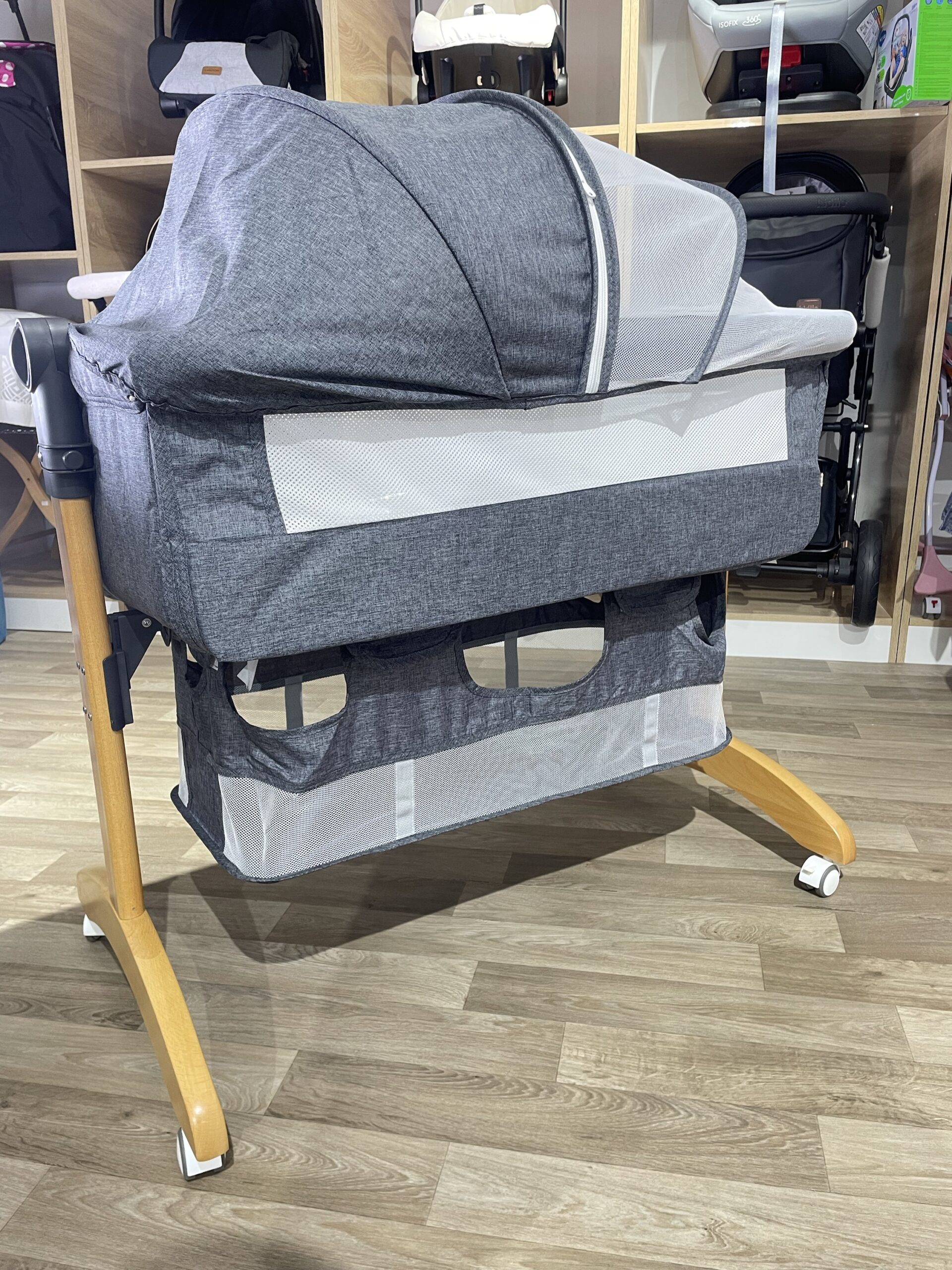 Pour que votre bébé soit près de vous durant toute la nuit tout en restant dans son berceau il n’y a pas mieux que le berceau co-sleeping. Ce berceau avec son matelas et moustiquaire évolutif utile dès la naissance en toute sécurité pendant que les parents se reposent. Spécifications: