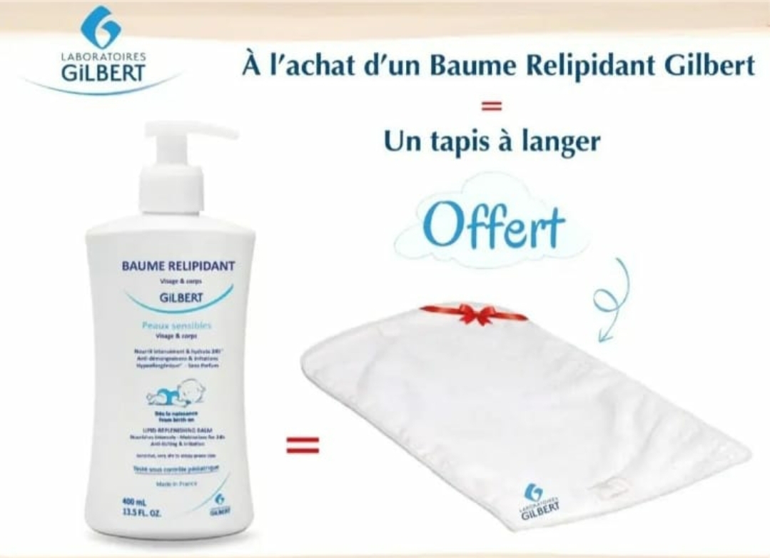 OFFRE GILBERT : BAUME RELIDIDANT 400ML + TAPIS CHANGE OFFERT