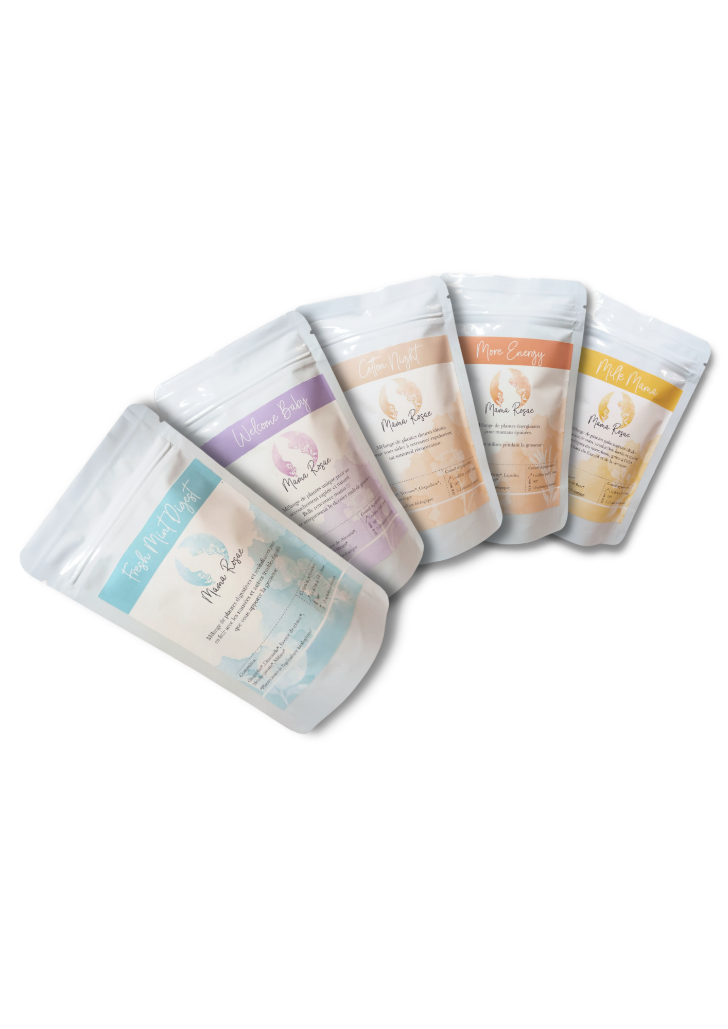 Le coffret Pack Essentiel MAMA est une sélection des infusions idéales pour vivre une grossesse en douceur de A à Z. L’incontournable cadeau à s’offrir OU se faire offrir dès le début de sa grossesse ! Le Pack Mama Rosae est composé de : – FRESH MINT DIGEST, 35gr – WELCOME BABY, 35gr -COTTON NIGHT, 25gr – MORE ENERGY, 35gr – MILK MAMA, 35 gr LIVRAISON OFFERTE !