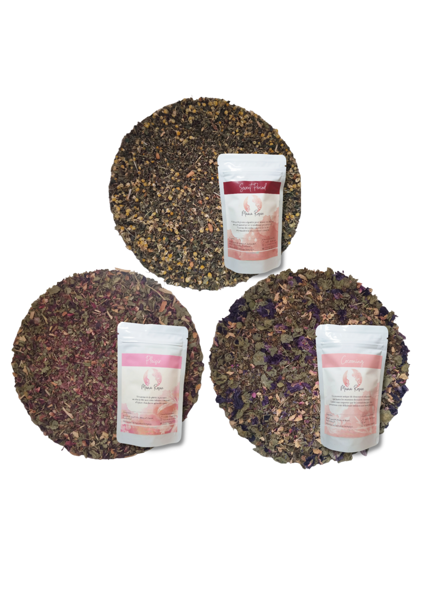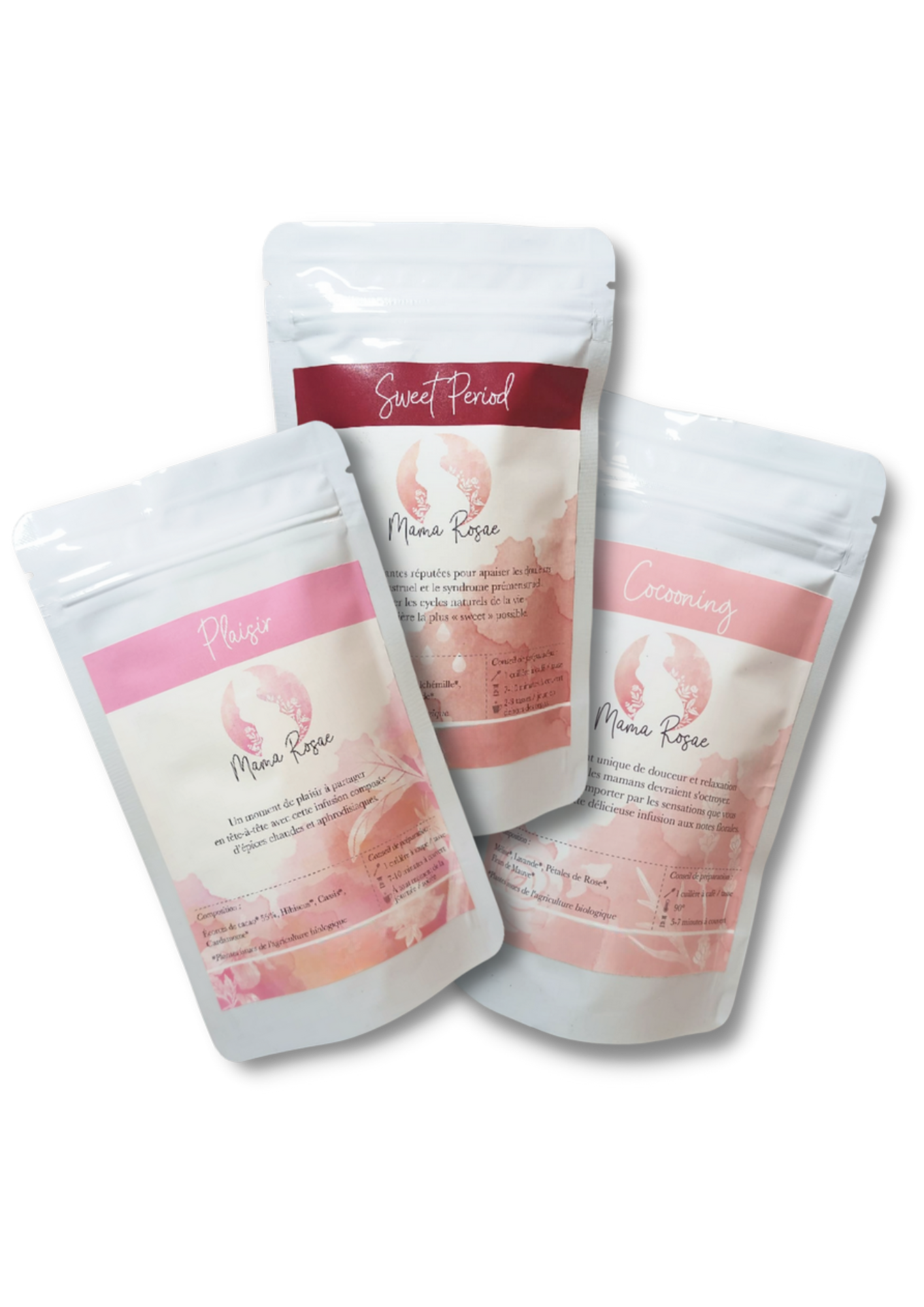Sélection des infusions idéales pour toutes les femmes. Pour penser à soi ou à elle(s). Le Pack Essentiel est composé de : – SWEET PERIOD, 35gr – COCOONING, 25 gr – PLAISIR, 35 gr Astuce: Si vous souhaitez offrir ce pack, vous pouvez l’expédier directement chez la personne à gâter. Nous pouvons lui écrire un petit mot sur la jolie carte qui se trouve à l’intérieur ! Laissez nous votre message dans le petit encart “Notes de commande” sur la page de validation de la commande et nous nous ferons un plaisir de l’ajouter pour vous.
